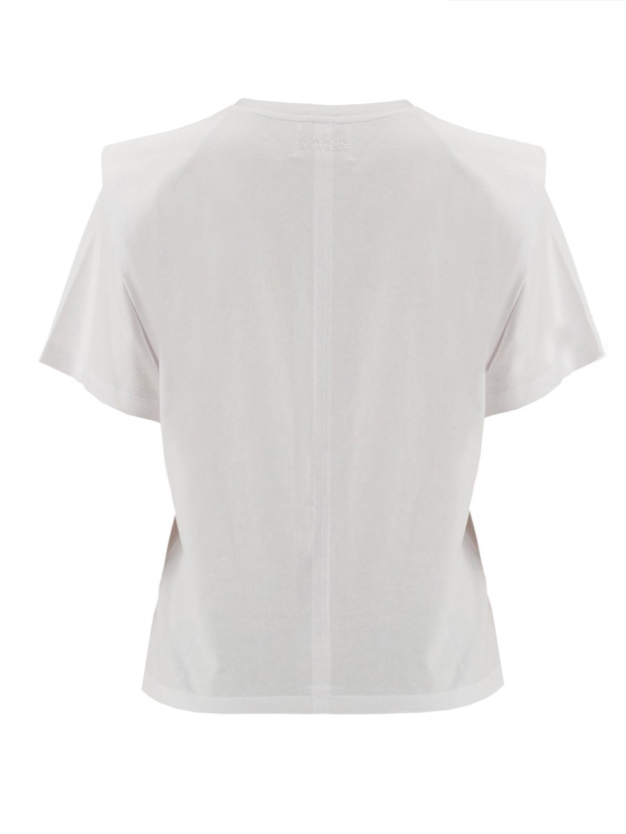 Questa T-shirt bianca di Isabel Marant è un classico senza tempo che unisce stile, comfort e versatilità. Realizzata in cotone di prima qualità, questa T-shirt è progettata per offrire un livello imbattibile di morbidezza e traspirabilità, garantendo un comfort che dura tutto il giorno. La silhouette regular fit offre un look rilassato e lusinghiero per tutti i tipi di corpo, rendendola un capo essenziale del guardaroba di tutti.