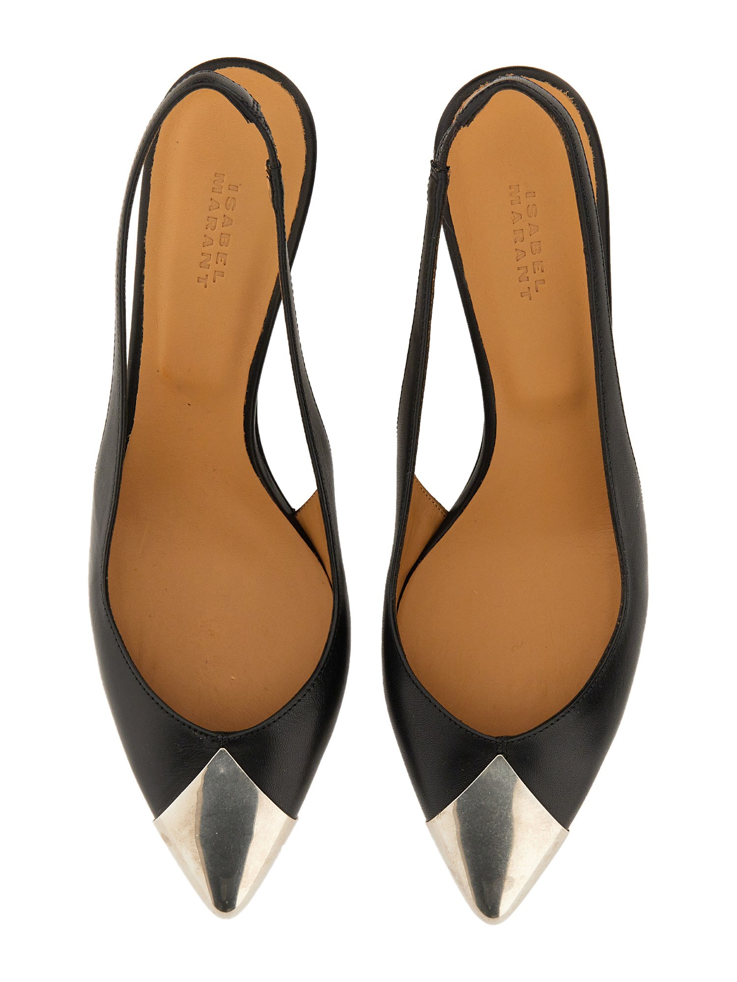 Questo paio di classiche slingback di Isabel Marant è caratterizzato da un cinturino posteriore a contrasto che crea un look audace ed elegante. I cinturini sono realizzati in pelle di vitello e foderati con un colore a contrasto per creare un look elegante. Queste scarpe sono un'ottima aggiunta al guardaroba di ogni donna.