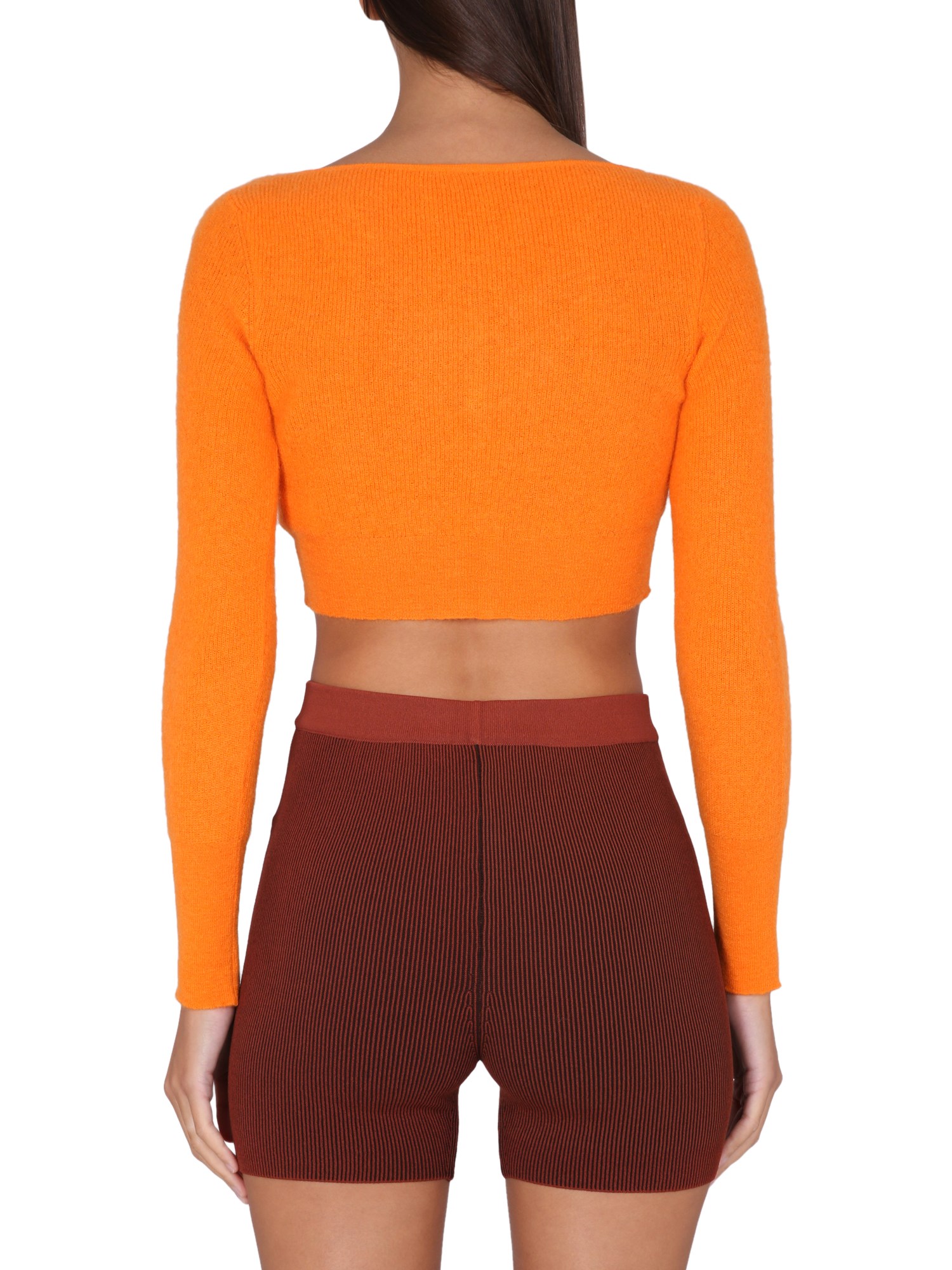 - SCOLLO A V- CHIUSURA FRONTALE CON BOTTONI- LAVORAZIONE A COSTINE- CROPPED- 50% MOHAIR, 12% POLIAMMIDE, 4% ELASTAN, 3% POLIESTERE- LA MODELLA É ALTA 180 CM E INDOSSA LA TAGLIA 38 FR