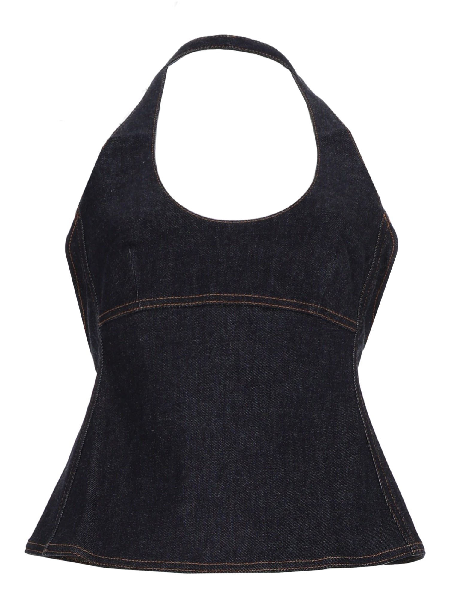 TOP LAVOIR IN DENIM DI COTONE E CASHMERE