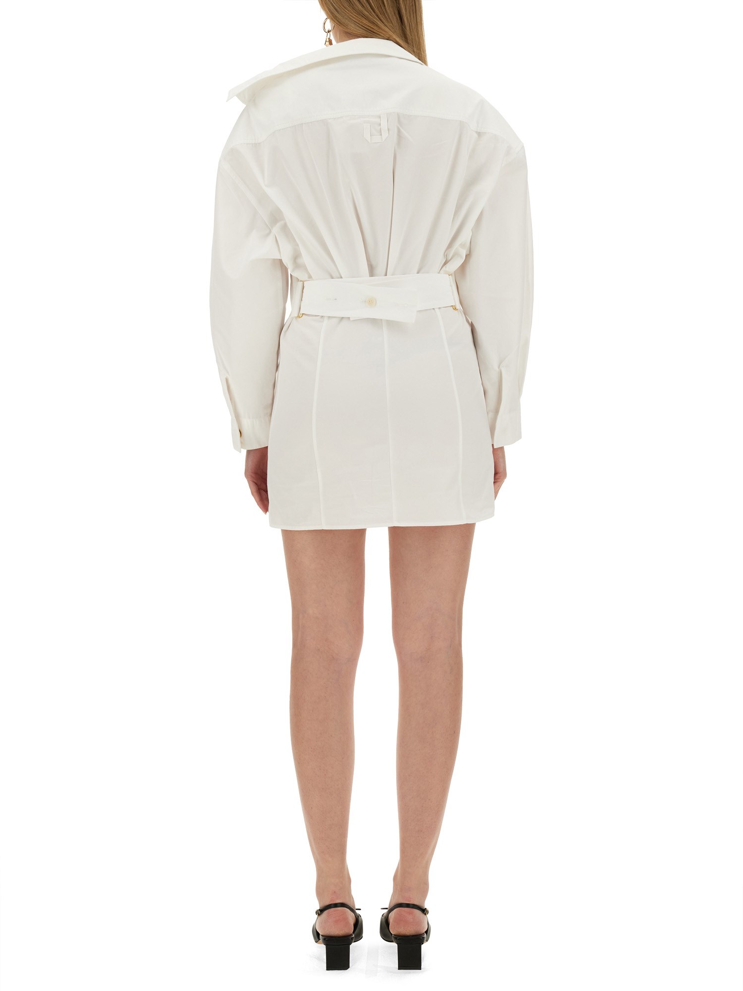 Questo mini abito camicia in cotone bianco di Jacquemus presenta una chiusura frontale con bottoni, che aggiunge un tocco di raffinatezza a un design classico. Realizzato in cotone di alta qualità, questo abito è comodo ed elegante e rappresenta un capo versatile per qualsiasi guardaroba. La lunghezza mini aggiunge un tocco moderno alla tradizionale silhouette dell'abito da camicia, perfetto sia per le occasioni casual che per quelle formali.