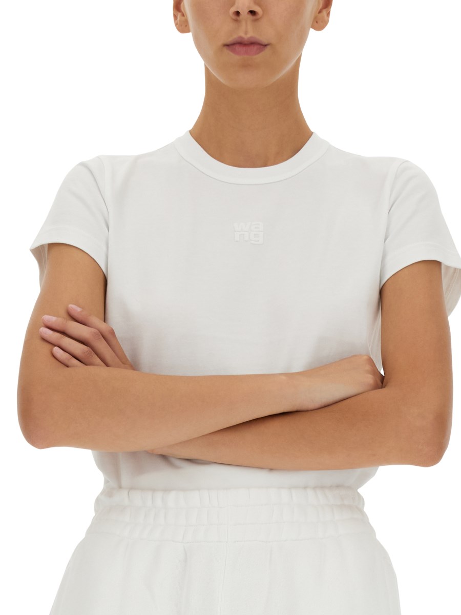 - GIROCOLLO- LOGO FRONTALE IN 3D - 100% COTONE - LA MODELLA È ALTA 185 CM E INDOSSA LA TAGLIA S