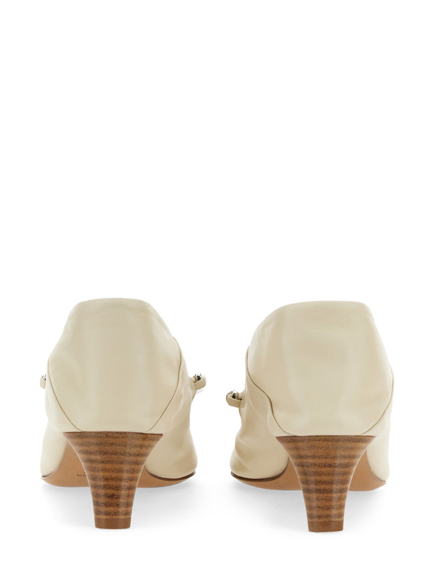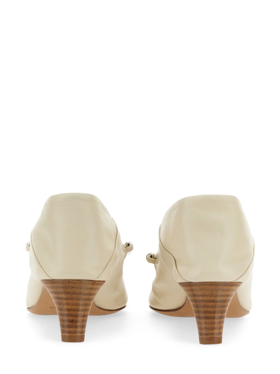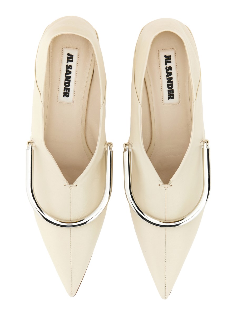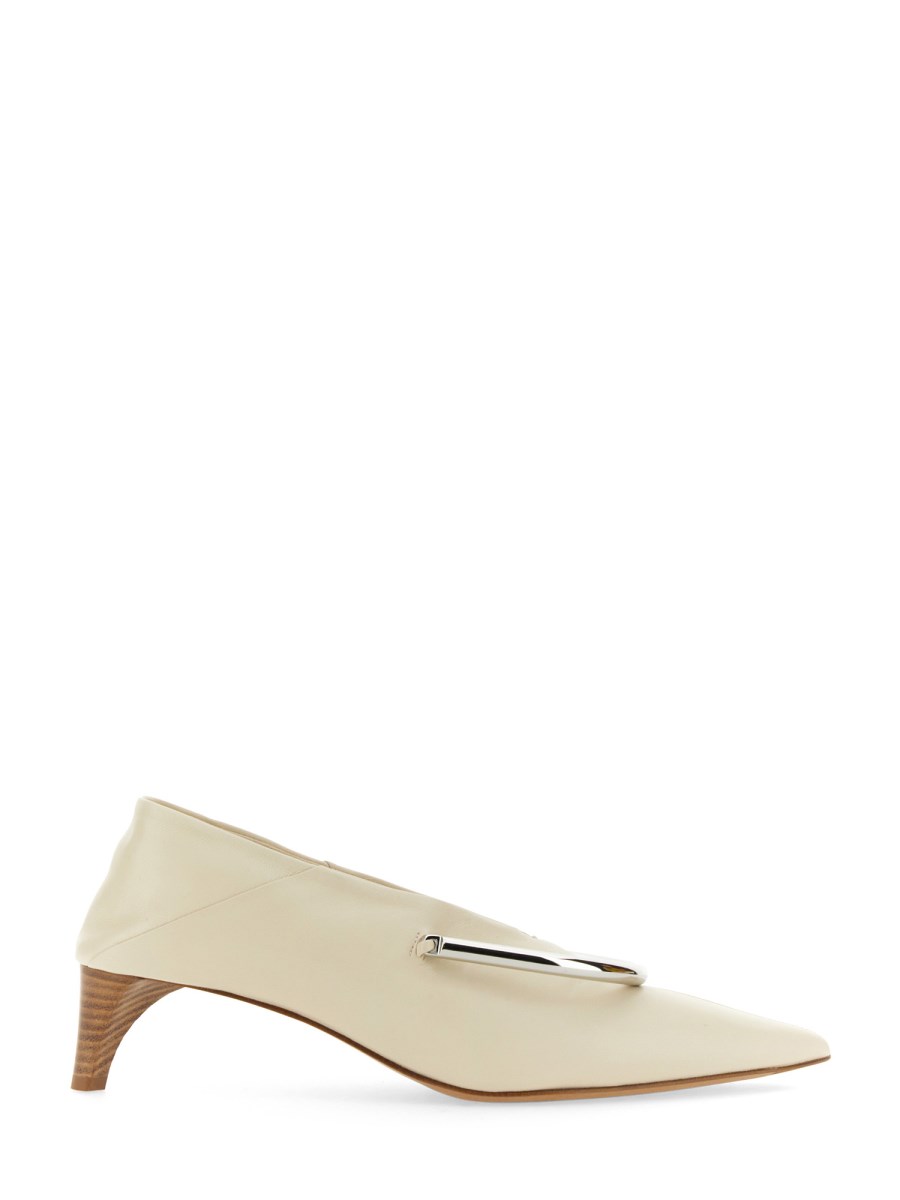 La décolleté con tacco a spillo di Jil Sander è una scarpa elegante, perfetta per qualsiasi occasione formale. La punta appuntita, le finiture argentate e il delicato fiocco frontale conferiscono a questa scarpa un aspetto sofisticato. Hanno un design a punta e sono fatte per essere abbinate a tutto. Le finiture argentate e la tomaia in pelle liscia ne fanno una scelta elegante.