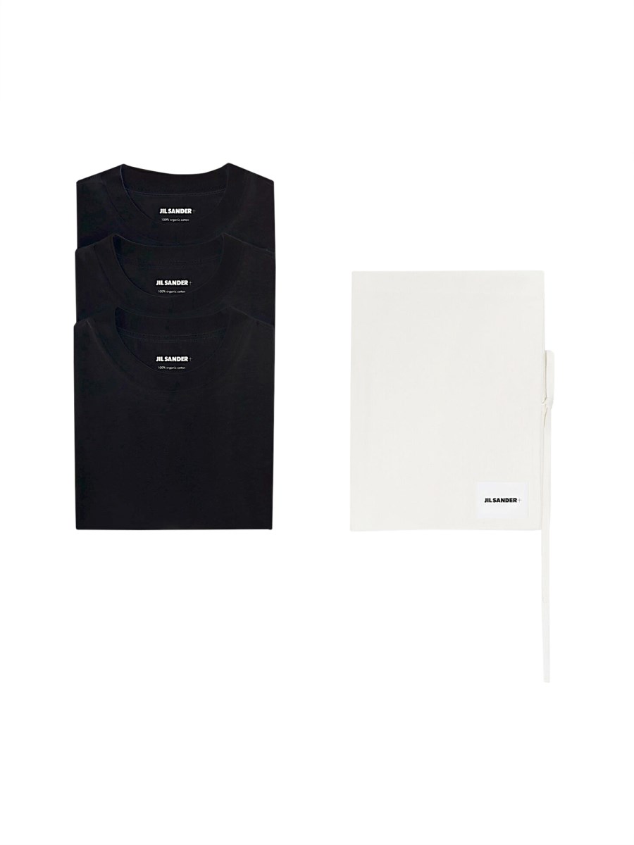 La T-shirt nera a tre set di Jil Sander è un capo standard nel guardaroba di ogni uomo. È una camicia in cotone con girocollo e maniche corte. Lo stile a girocollo è ideale per un look più professionale, ma è comunque comodo. La maglietta nera a tre set è un capo standard nel guardaroba di ogni uomo. È una camicia in cotone con girocollo e maniche corte.