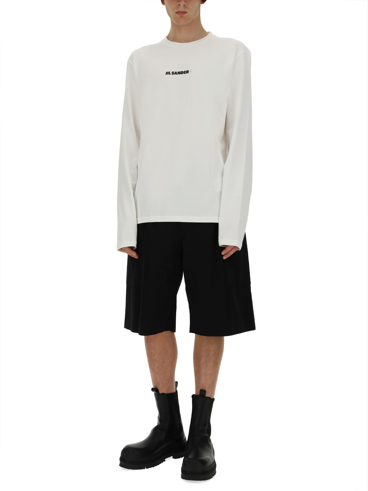 Aggiungete un tocco di lusso alla vostra collezione di capi base con questa T-shirt con logo di Jil Sander. Realizzata in morbido cotone, questa t-shirt presenta un classico girocollo, maniche lunghe e orlo dritto. Facile da abbinare e da indossare, è il capo perfetto per ogni occasione casual.