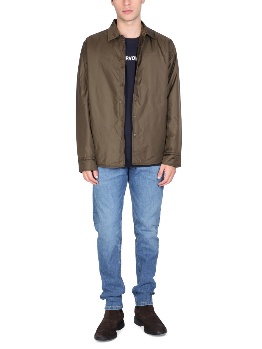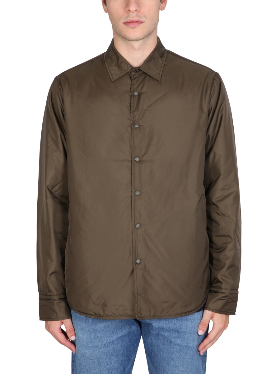 Un look classico e chic è quello che caratterizza questa giacca button-up di Aspesi. È realizzata in un misto di nylon e poliestere, con una sottile lucentezza. Ha una chiusura con bottoni a pressione e il colletto è dotato di un bottone a pressione regolabile per regolare la taglia. La giacca, dalla vestibilità regolare, ha due tasche laterali e un interno foderato.