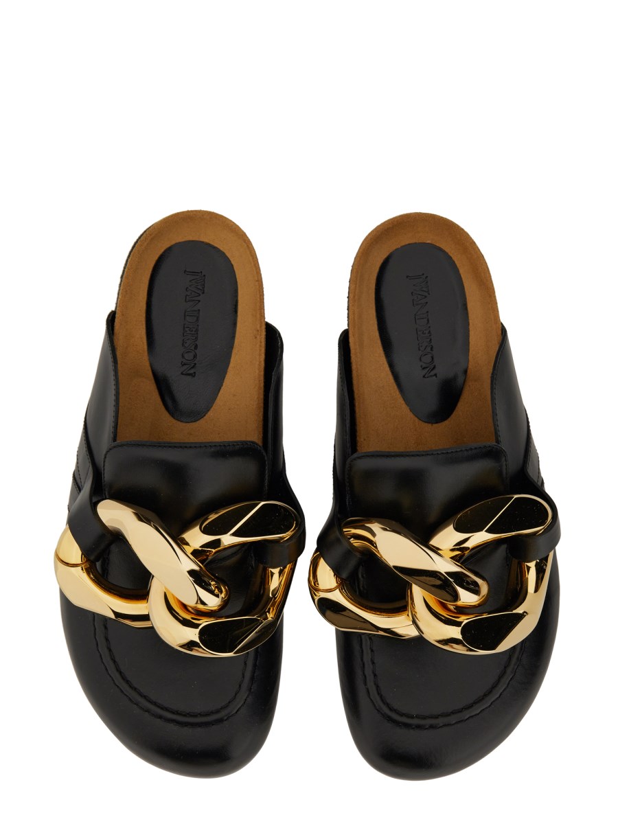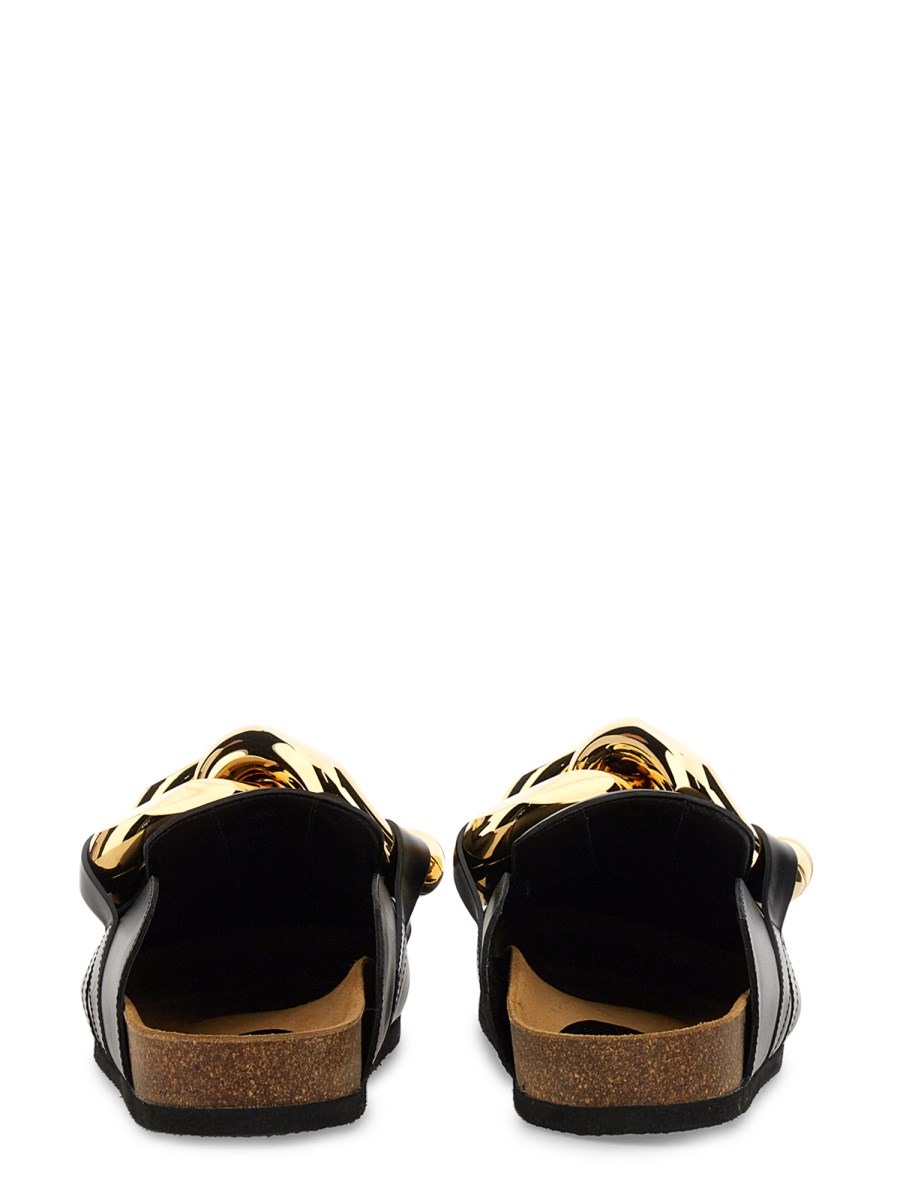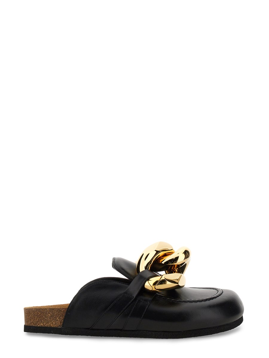 Il classico di tutti i tempi, il Leather Mule di JW Anderson, è un must-have per il vostro armadio. La pelle spessa, resistente e morbida è leggermente lucida grazie al plantare in sughero e alla suola in gomma che garantisce stabilità. Una catena oversize sul retro aggiunge un tocco glam. Questo paio di mules è realizzato in pelle ricca e morbida e presenta un plantare in sughero per un maggiore comfort.