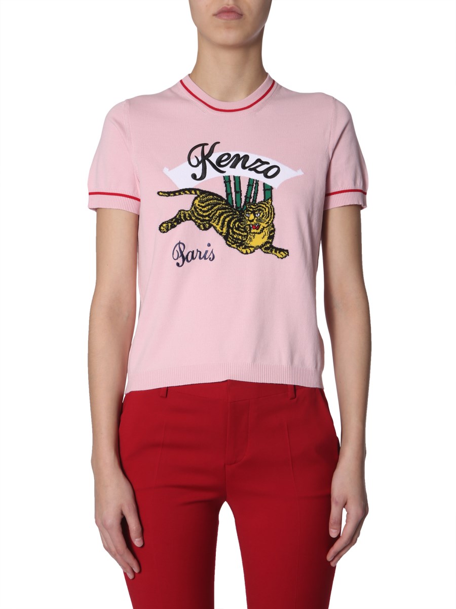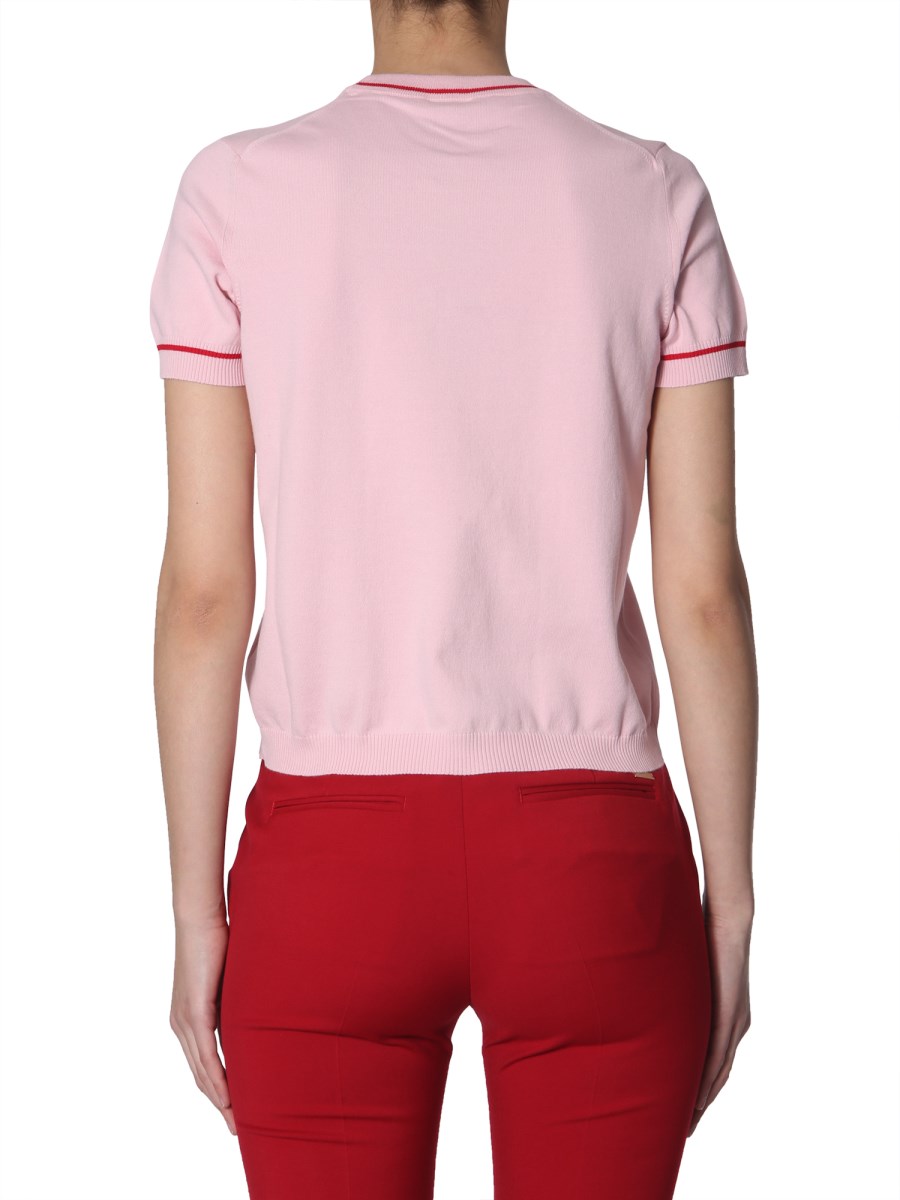- GIROCOLLO- MANICHE CORTE- INTARSIO FRONTALE- 73% COTONE, 16% POLIESTERE, 4% NYLON - LA MODELLA INDOSSA LA TAGLIA S