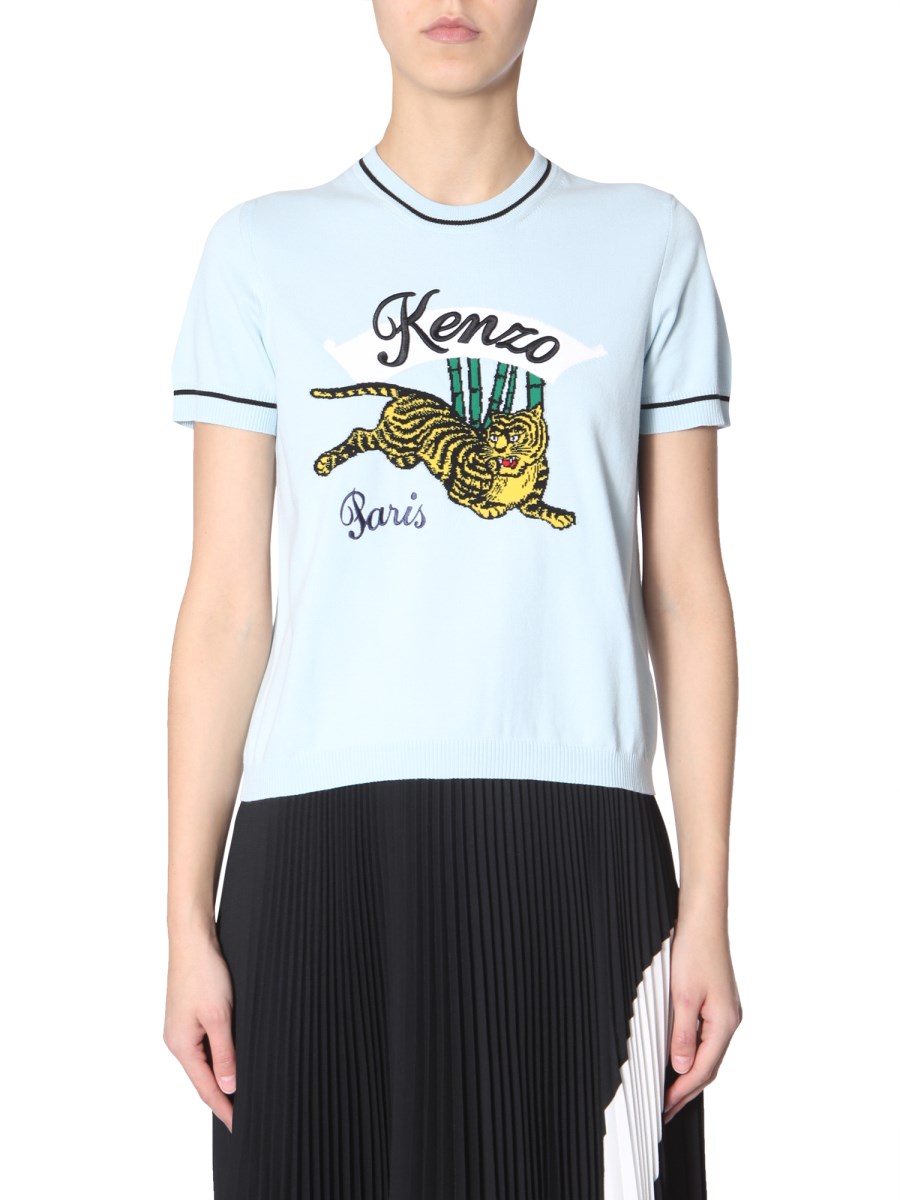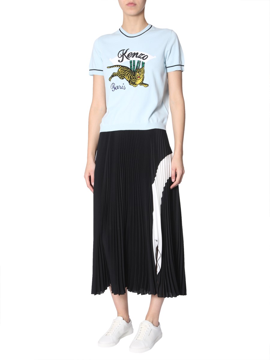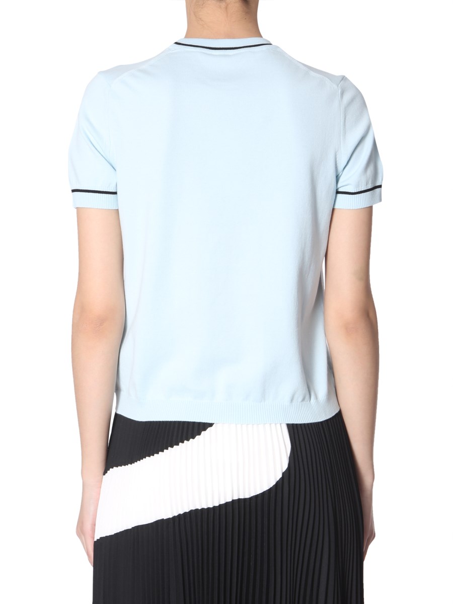 - GIROCOLLO- MANICHE CORTE- INTARSIO FRONTALE- 73% COTONE, 16% POLIESTERE, 4% NYLON - LA MODELLA INDOSSA LA TAGLIA S