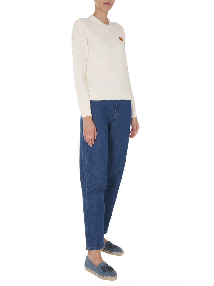 - GIROCOLLO- PATCH APPLICATO AL PETTO- COLLO, POLSI E FONDO A COSTE- 100% LANA - LA MODELLA È ALTA 178 CM E INDOSSA LA TAGLIA S