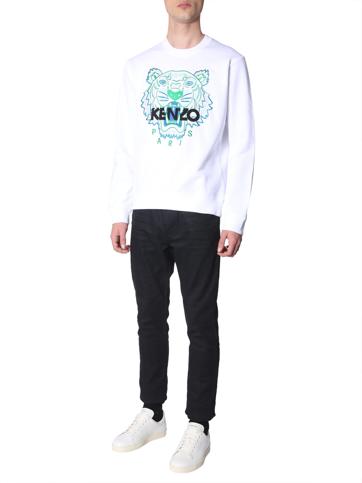 FELPA GIROCOLLO IN COTONE CON TIGRE RICAMATA