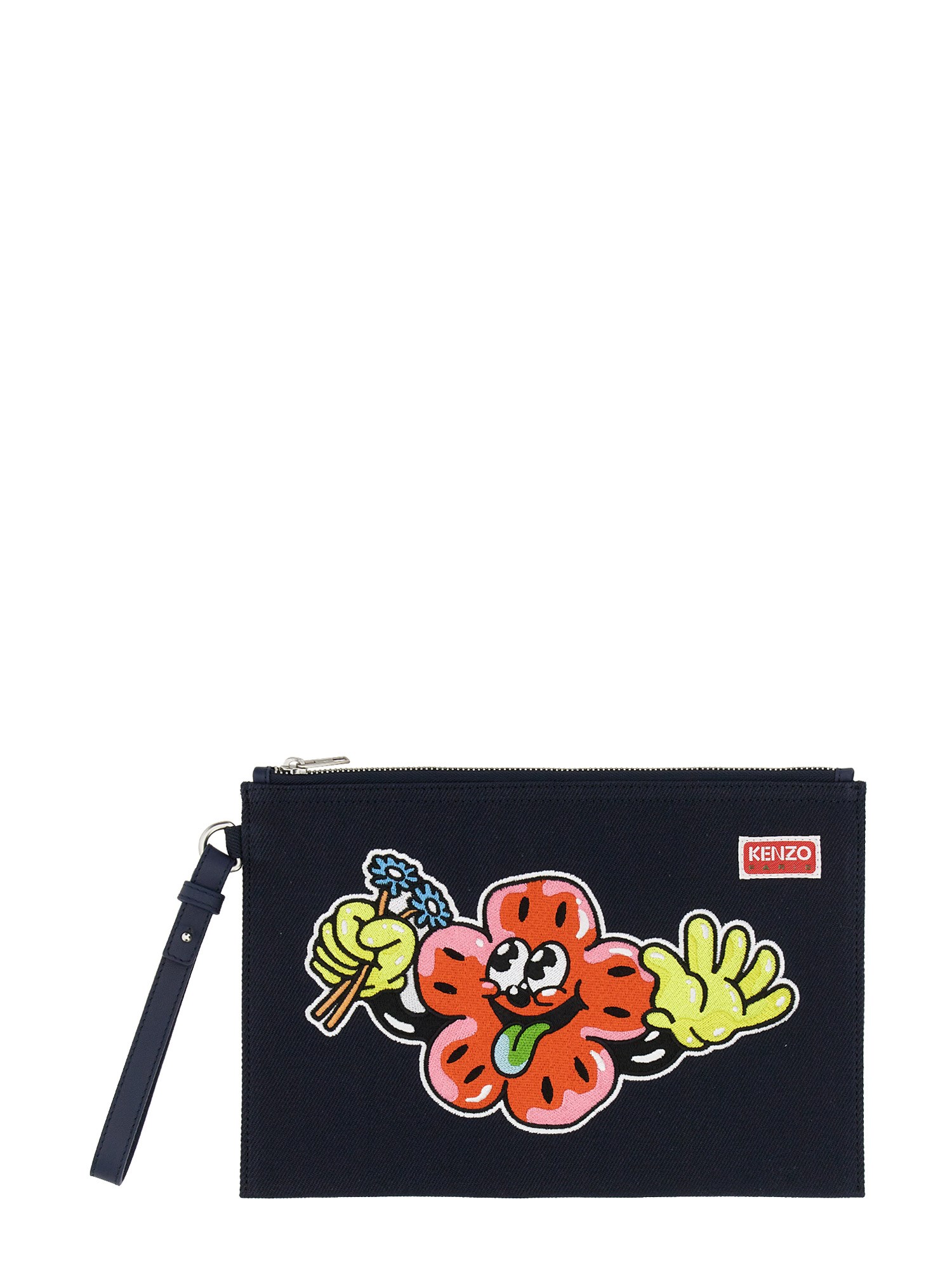 Questa pochette si ispira ai cartoni animati degli anni '50 e presenta il motivo "BOKE FLOWER" dell'ultima collezione. Sull'altro lato, il logo KENZO appare in uno stile simile a quello dei cartoni animati.