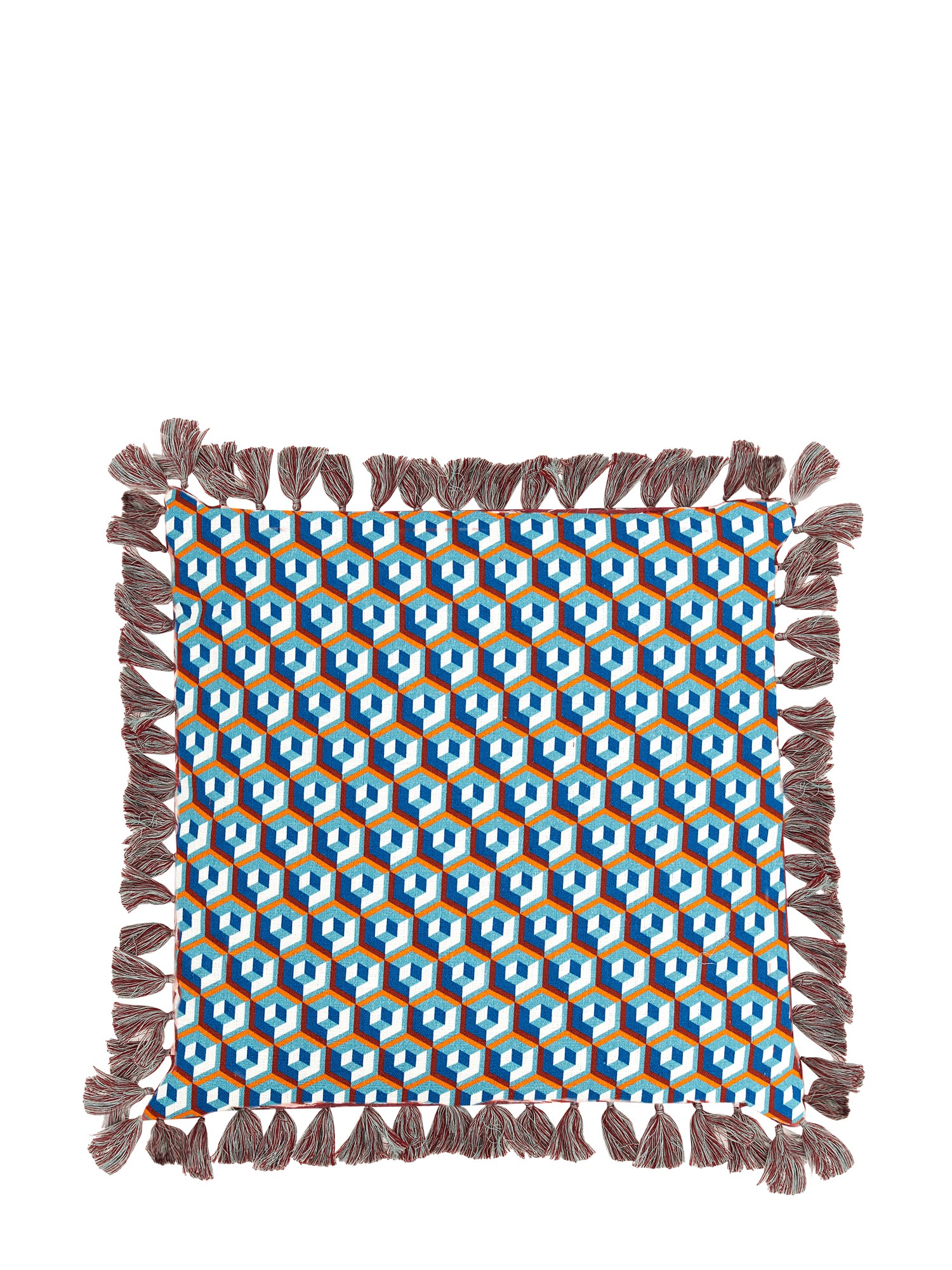 - FRANGE IN COTONE A CONTRASTO- STAMPA CUBI ALL OVER- DIMENSIONI: A 50 CM X L 50 CM - 100% COTONE - MADE IN ITALY