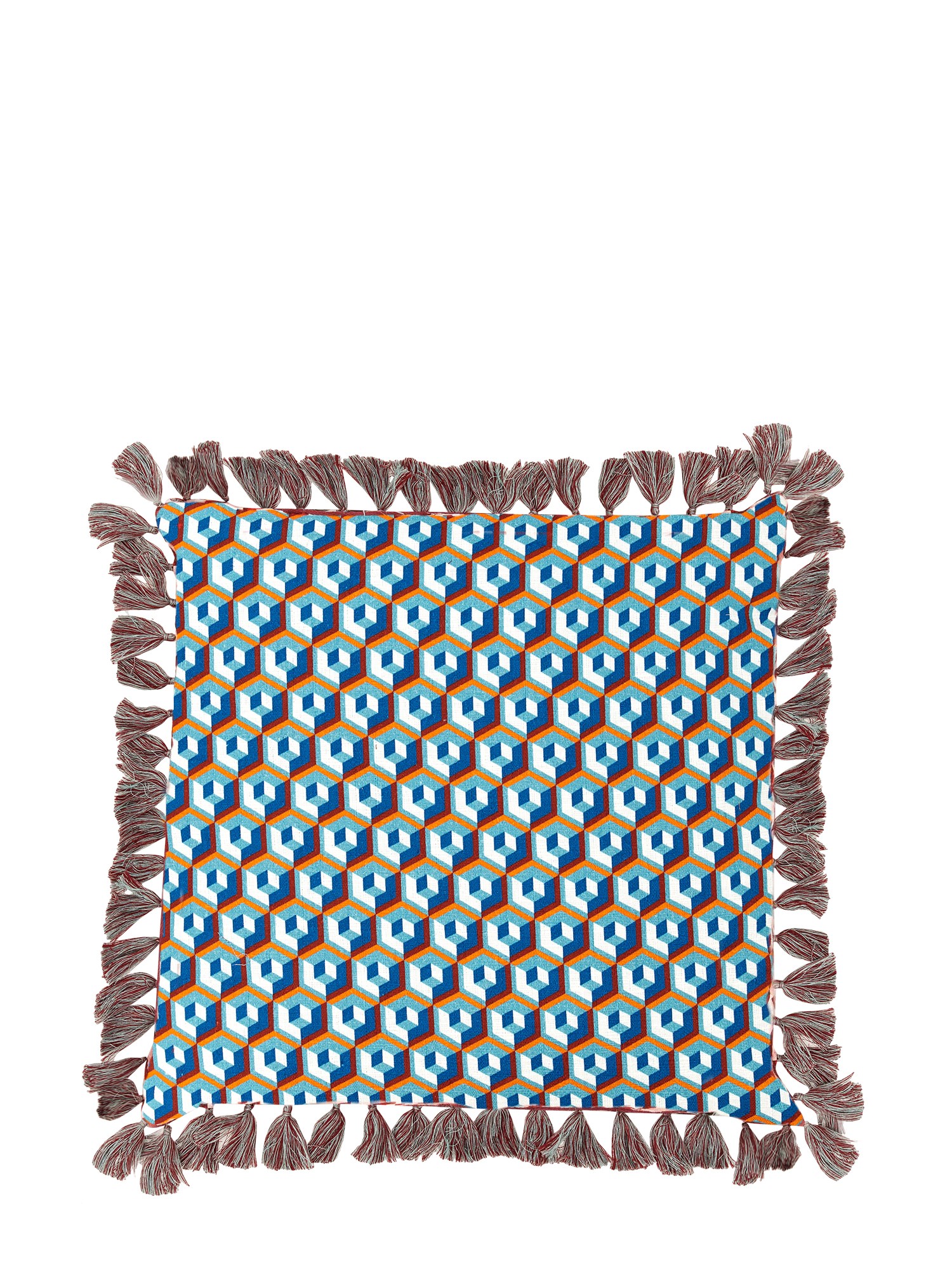 - FRANGE IN COTONE A CONTRASTO- STAMPA CUBI ALL OVER- DIMENSIONI: A 50 CM X L 50 CM - 100% COTONE - MADE IN ITALY