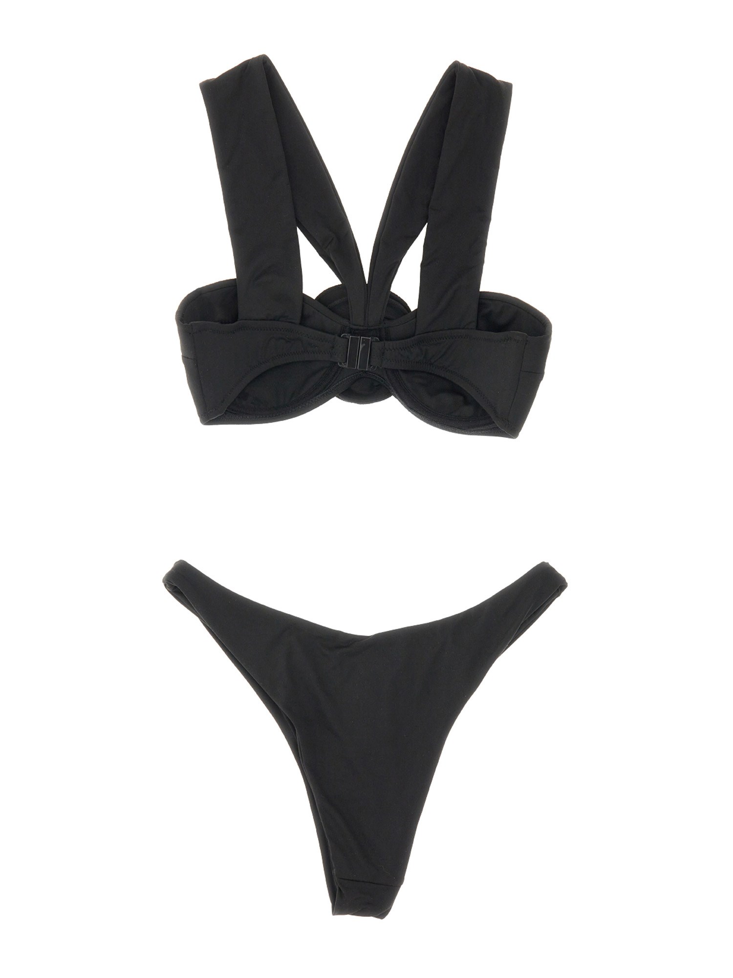 Questo costume da bagno di La Reveche è realizzato con un mix di poliammide ed elastan, che gli conferisce una sensazione di elasticità e comfort. Ha una chiusura posteriore a gancetto incorporata ed è disponibile in nero. Questo costume da bagno è realizzato in un materiale leggero e confortevole che lo rende un'ottima scelta per la spiaggia. La schiena è dotata di una classica chiusura ad occhiello, mentre la parte anteriore presenta un dettaglio che aggiunge un tocco di eleganza al costume.