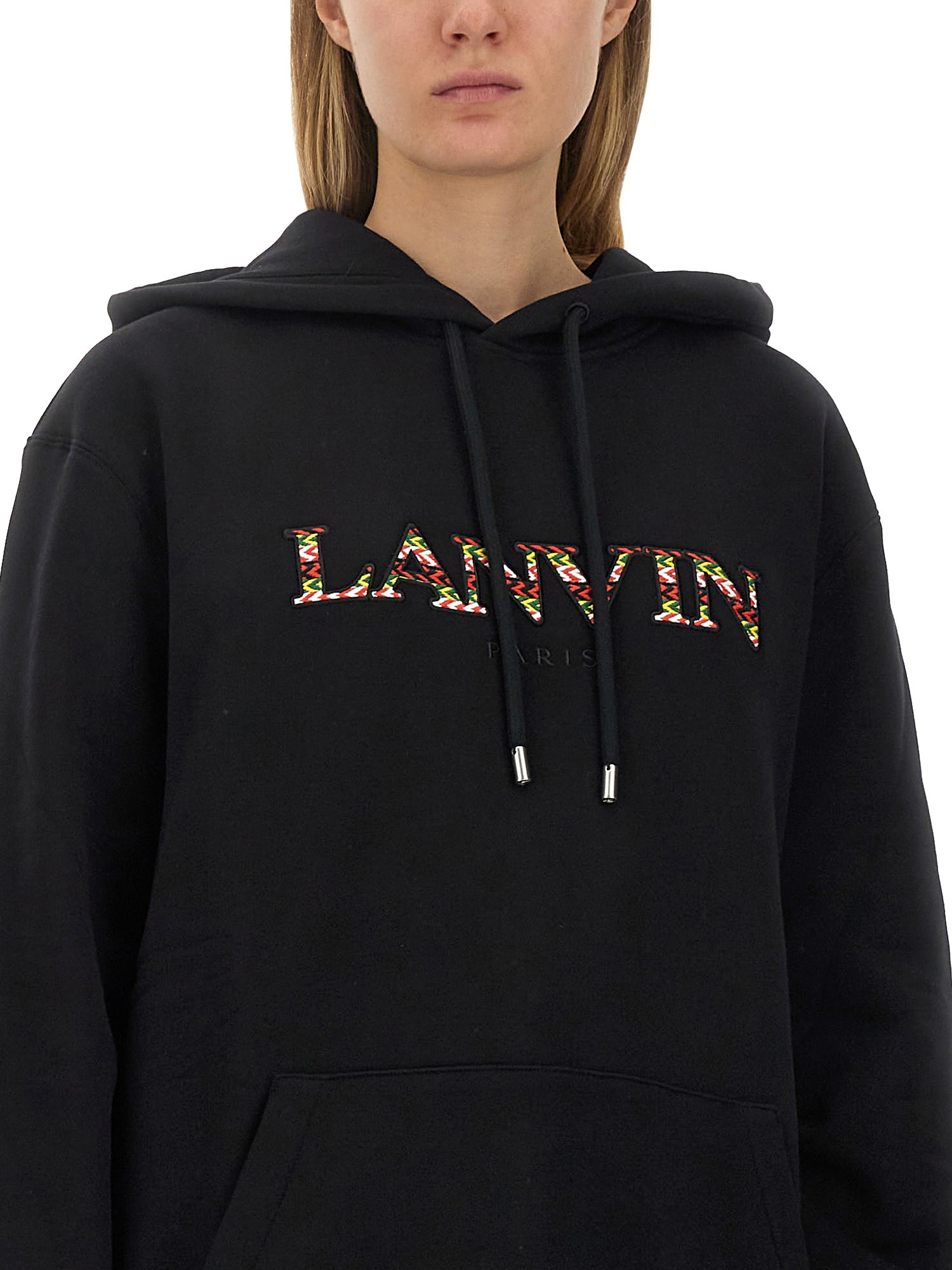 Il maglione in cotone a girocollo di Lanvin è il massimo in termini di comfort e stile. Questo maglione è stato realizzato con cura e presenta una tasca a marsupio per un facile accesso, un cappuccio con coulisse per un maggiore calore e un'elegante stampa del logo. Questo pezzo imperdibile di Lanvin renderà il vostro abbigliamento più bello.