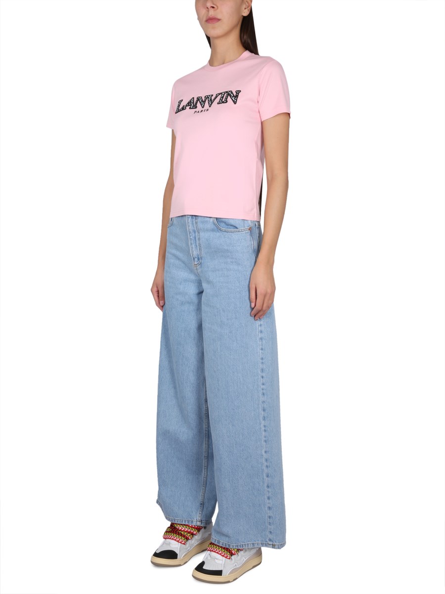 La T-shirt in cotone leggero di Lanvin è un'aggiunta semplice ma attraente alla vostra collezione. Il girocollo è ideale per essere indossato a strati, mentre la grafica frontale con logo diventerà subito una delle preferite. Questa T-shirt in cotone con stampa logo a girocollo è un capo senza tempo che sarà il vostro punto di riferimento per tutte le vostre esigenze casual. L'emblema sul davanti attirerà l'attenzione su di voi.