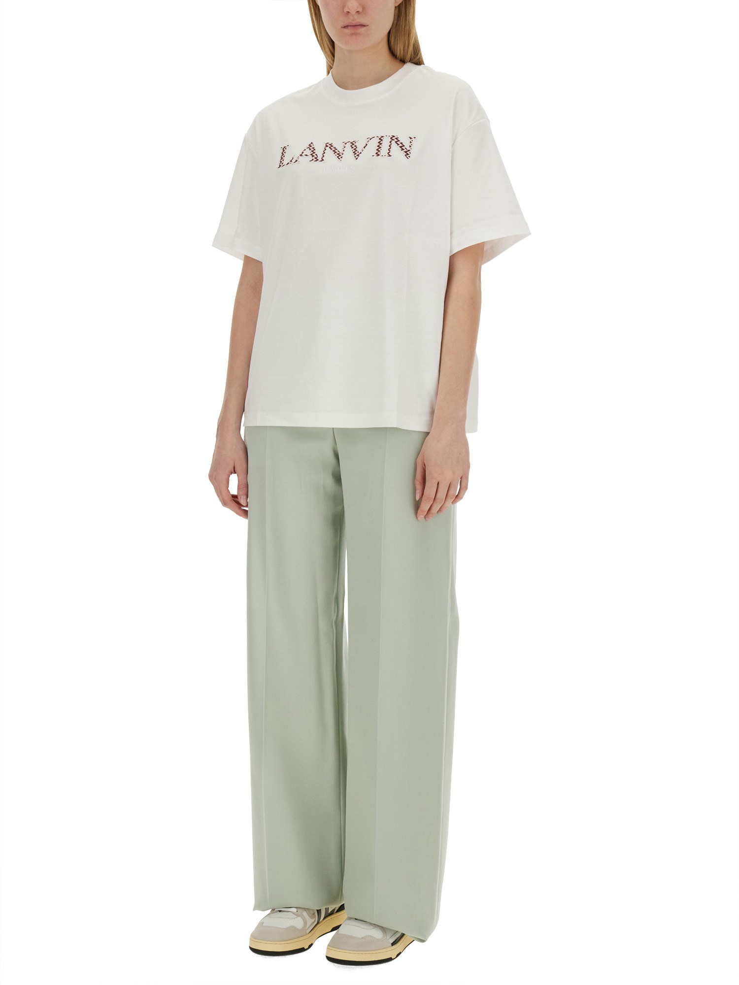 Questo capo di tendenza di Lanvin è un'aggiunta indispensabile al vostro guardaroba, che eleva senza sforzo il vostro look casual. Realizzata in morbido cotone di alta qualità, questa T-shirt assicura il massimo comfort per tutta la giornata. Il suo design oversize aggiunge un'atmosfera rilassata e disinvolta, perfetta per ogni occasione casual.