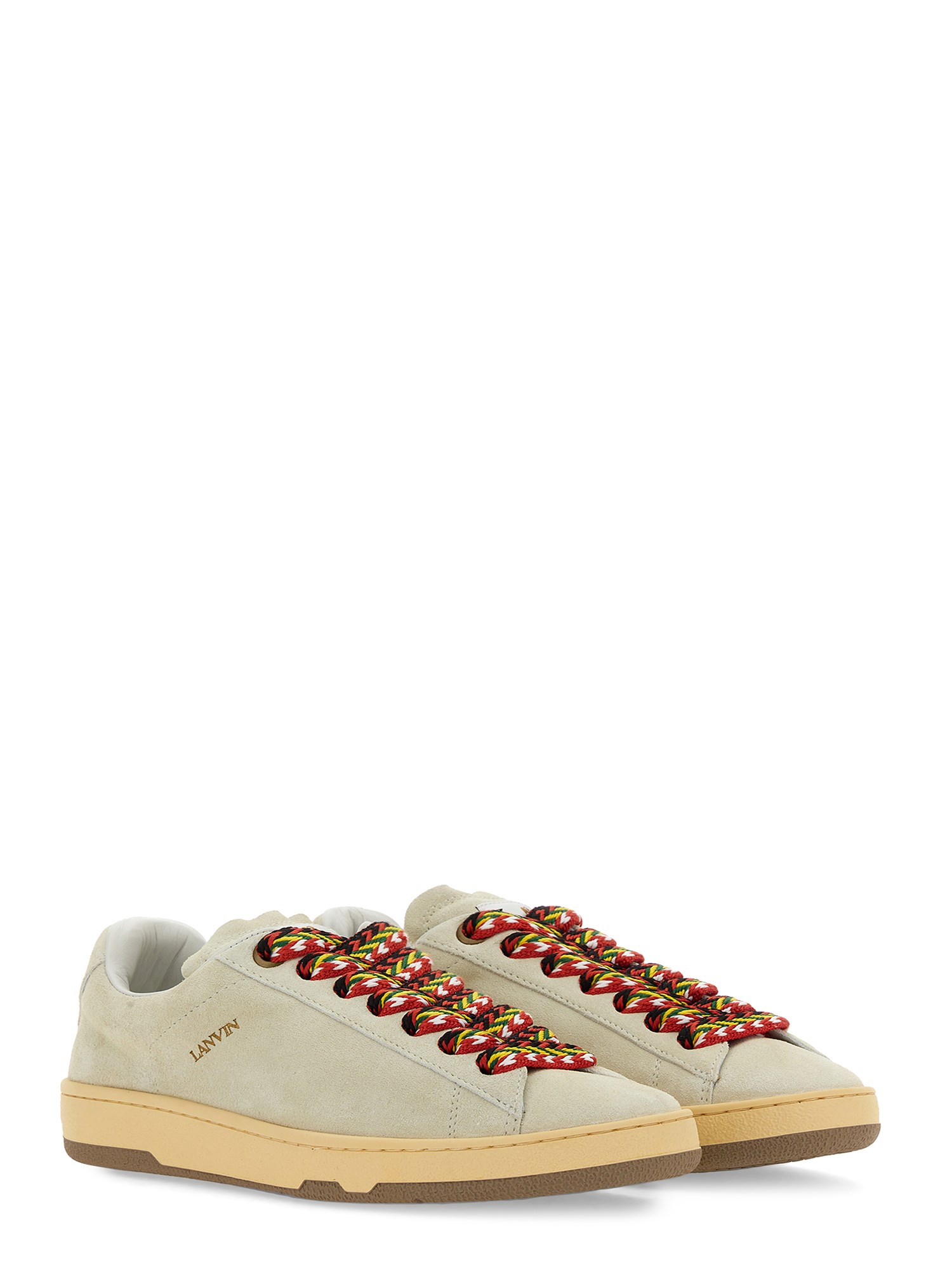 Queste sneakers di Lanvin sono l'aggiunta perfetta alla vostra collezione di scarpe. Realizzate in pelle di alta qualità, queste sneakers offrono un look elegante e classico che può essere facilmente abbinato a qualsiasi occasione. La chiusura piatta con lacci garantisce una calzata sicura e regolabile, assicurando il massimo comfort per tutta la giornata. Se camminate, correte o semplicemente svolgete le vostre attività quotidiane, queste sneakers offrono un eccellente supporto e stabilità, riducendo il rischio di sforzi o lesioni.