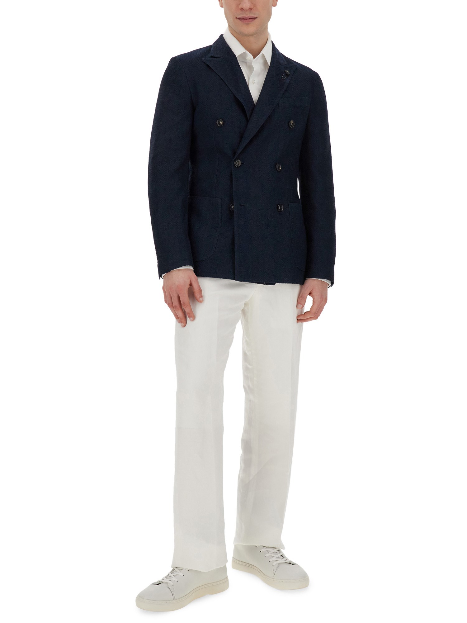 Questa giacca di Lardini è pensata per elevare i vostri look quotidiani. Il ricco colore blu aggiunge un tocco sofisticato, rendendola adatta sia alle occasioni casual che a quelle formali. Realizzata in tessuto di cotone di prima qualità, questa giacca offre una sensazione di leggerezza e traspirabilità, garantendo il comfort per tutto il giorno. Il design a doppio petto le conferisce un fascino classico e senza tempo, rendendola un'aggiunta indispensabile al vostro guardaroba.