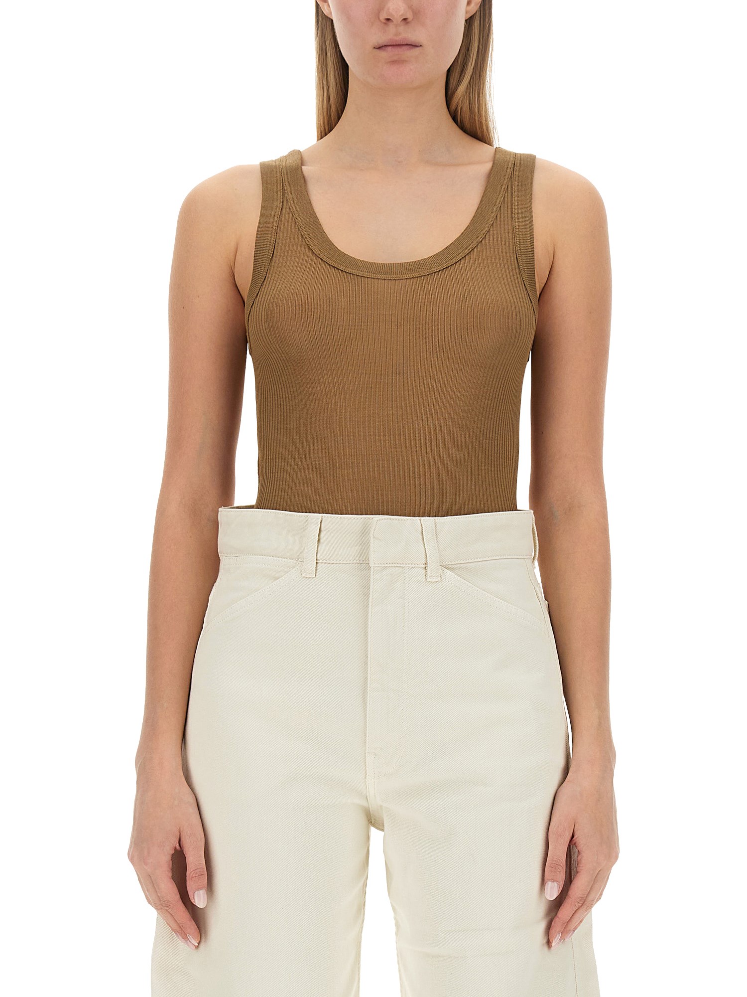 Provate un'eleganza senza precedenti con il top in seta senza cuciture di Lemaire. Realizzato alla perfezione, questo top è stato creato con un lussuoso tessuto di seta, che si traduce in un capo che emana raffinatezza e grazia. La costruzione senza cuciture aggiunge un tocco di modernità, assicurando una finitura perfetta da ogni angolazione.