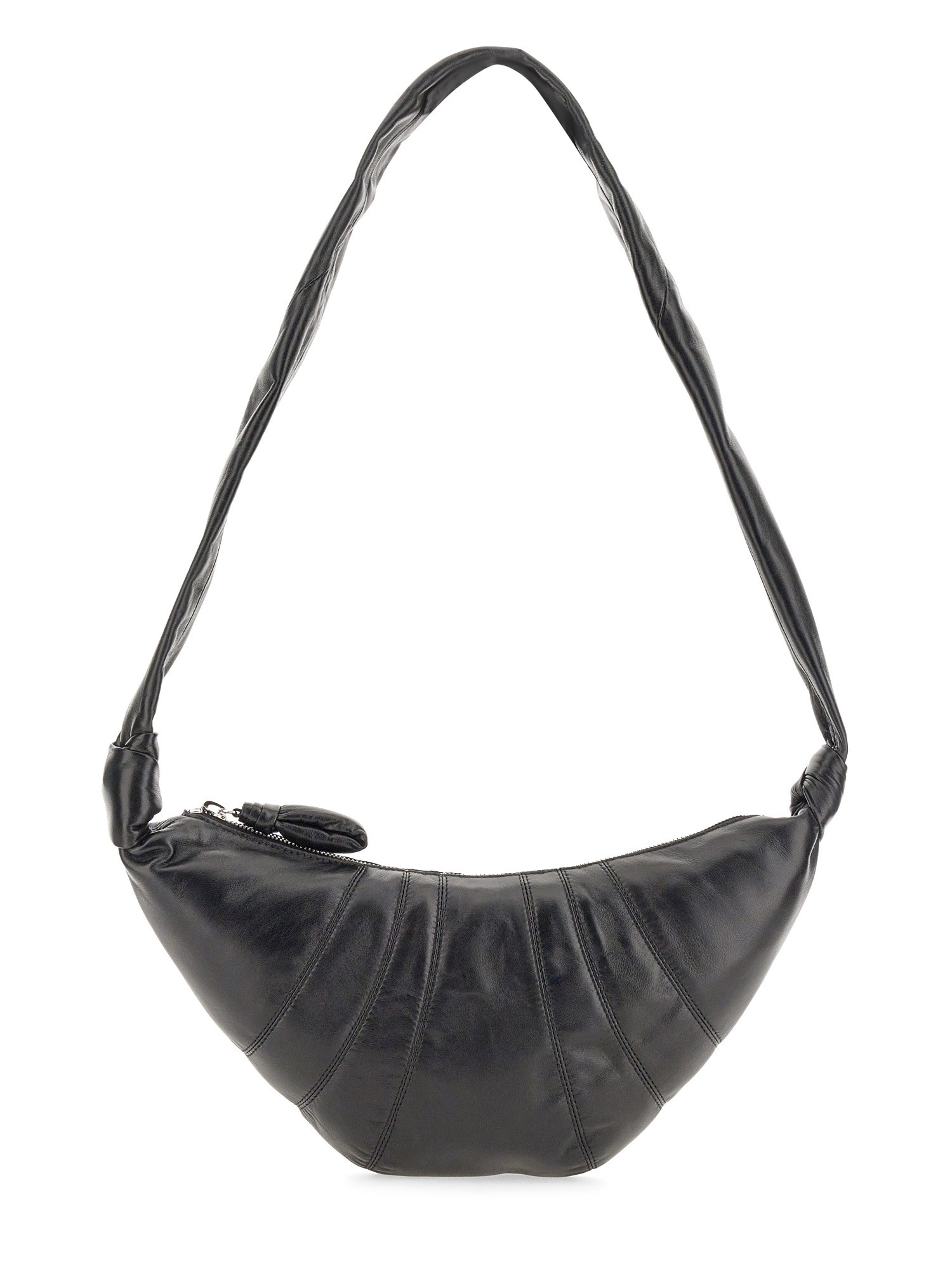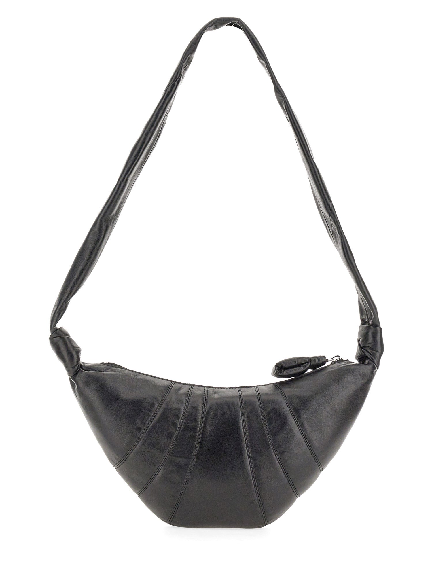 Disegnata con una forma a cornetto unica e accattivante, questa borsa di Lemaire si distingue dalla massa e aggiunge un tocco di raffinatezza a qualsiasi abbigliamento. Realizzata in pelle nera di alta qualità, emana eleganza e durata, assicurando che sarà una compagna preziosa per gli anni a venire. La chiusura a cerniera aggiunge una funzione comoda e sicura per tenere i vostri effetti personali al sicuro e a portata di mano.