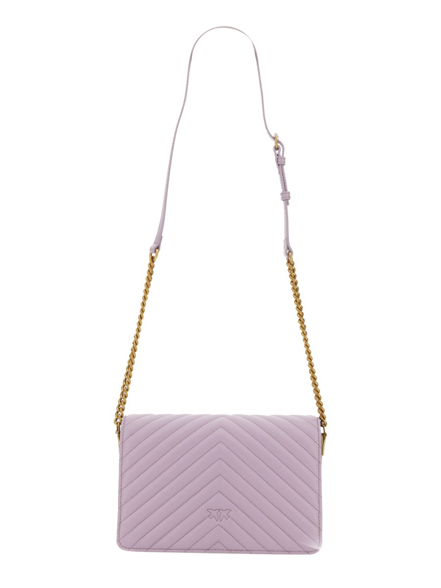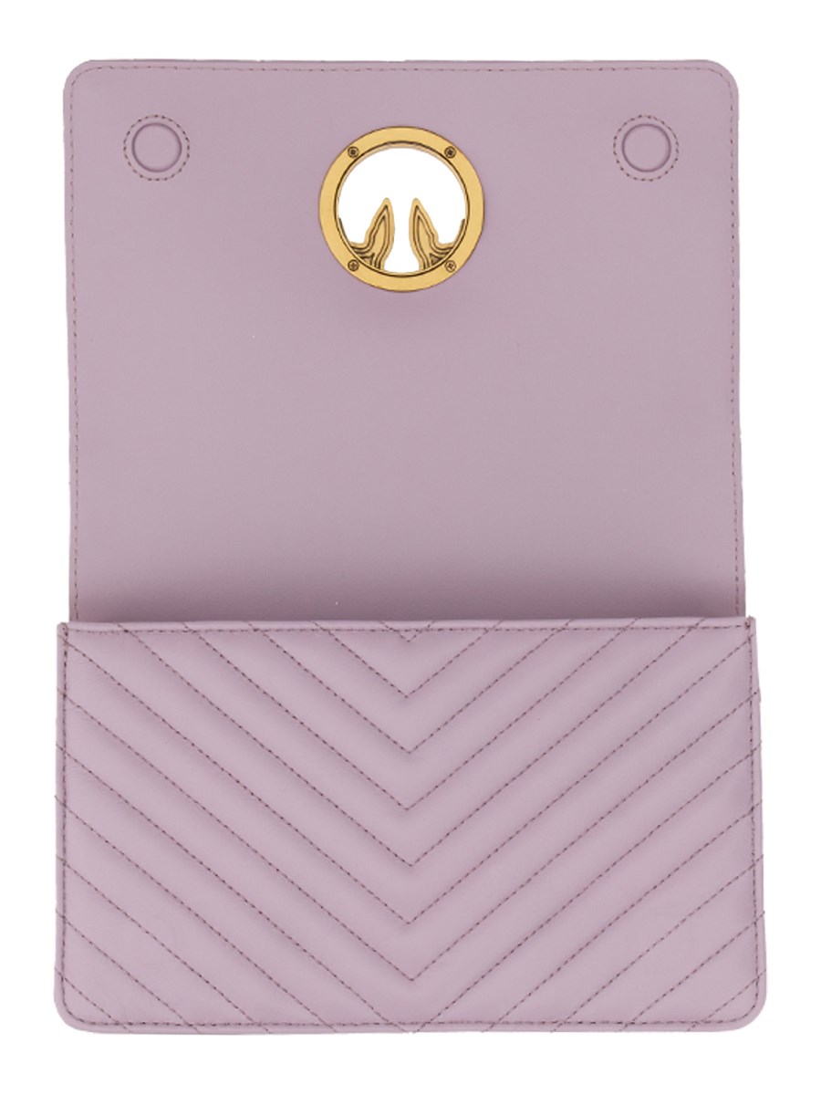 Una pratica e chic borsa a scatto classica di Pinko, classica e moderna al tempo stesso. Questa borsa è realizzata in morbida e liscia pelle Nappa trapuntata, leggermente strutturata per conferire una bella finitura elegante. Presenta una tracolla a catena con inserto in pelle, una chiusura con fibbia in metallo con taglio a diamante Love Birds e un interno foderato in microfibra effetto scamosciato.