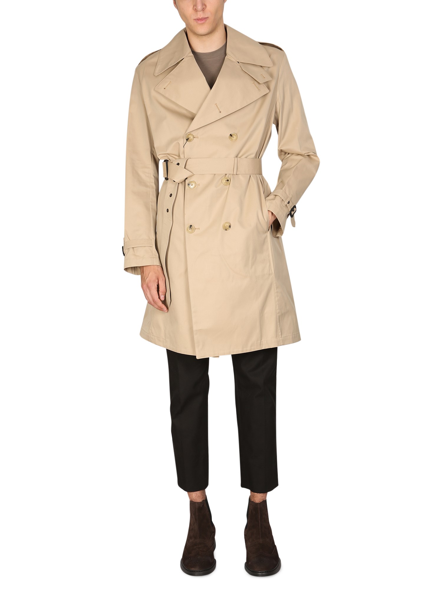 Questo trench semplice ma classico di Mackintosh è realizzato in materiale di cotone resistente e di qualità. Presenta una chiusura a doppio petto con bottoni e un ampio bavero a tre quarti. È un cappotto versatile che può essere indossato per il lavoro, per eventi formali o per l'uso quotidiano.