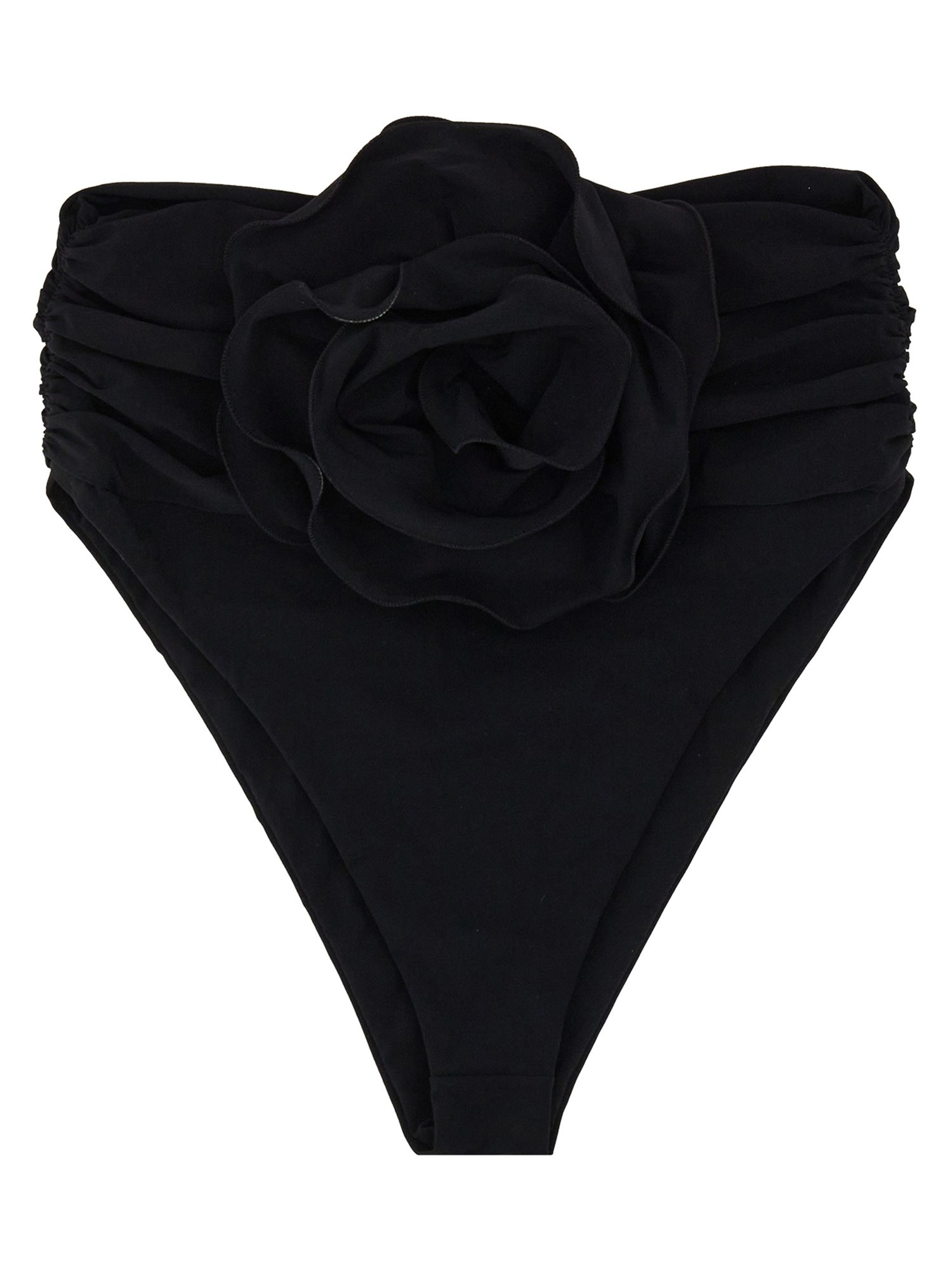 Slip a vita alta con dettagli increspati, simili a una cintura, che si arriccia al centro e presenta una grande applicazione floreale rimovibile che può essere appuntata anche sui top a fascia abbinati.