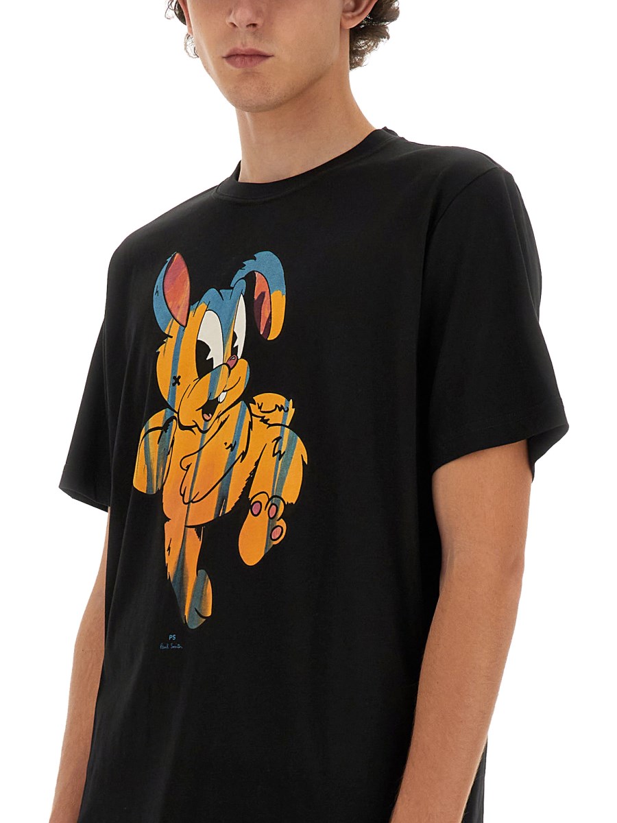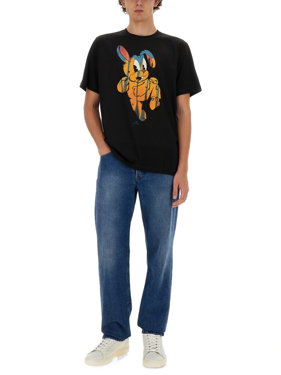 La T-shirt "RABBIT" di PS by Paul Smith è un capo elegante e contemporaneo che sfoggia una grafica giocosa a forma di coniglio, incarnando il caratteristico mix di estrosità e raffinatezza del marchio. Realizzata in cotone di alta qualità, questa T-shirt offre un comfort e una durata eccezionali, rendendola un'aggiunta versatile a qualsiasi guardaroba. La vestibilità classica e la scollatura a girocollo assicurano una silhouette perfetta, mentre il design vivace aggiunge un tocco di personalità agli outfit casual. Ideale sia per l'abbigliamento quotidiano che per le occasioni speciali, questa T-shirt è l'esempio dell'impegno di Paul Smith per la qualità e il design unico.