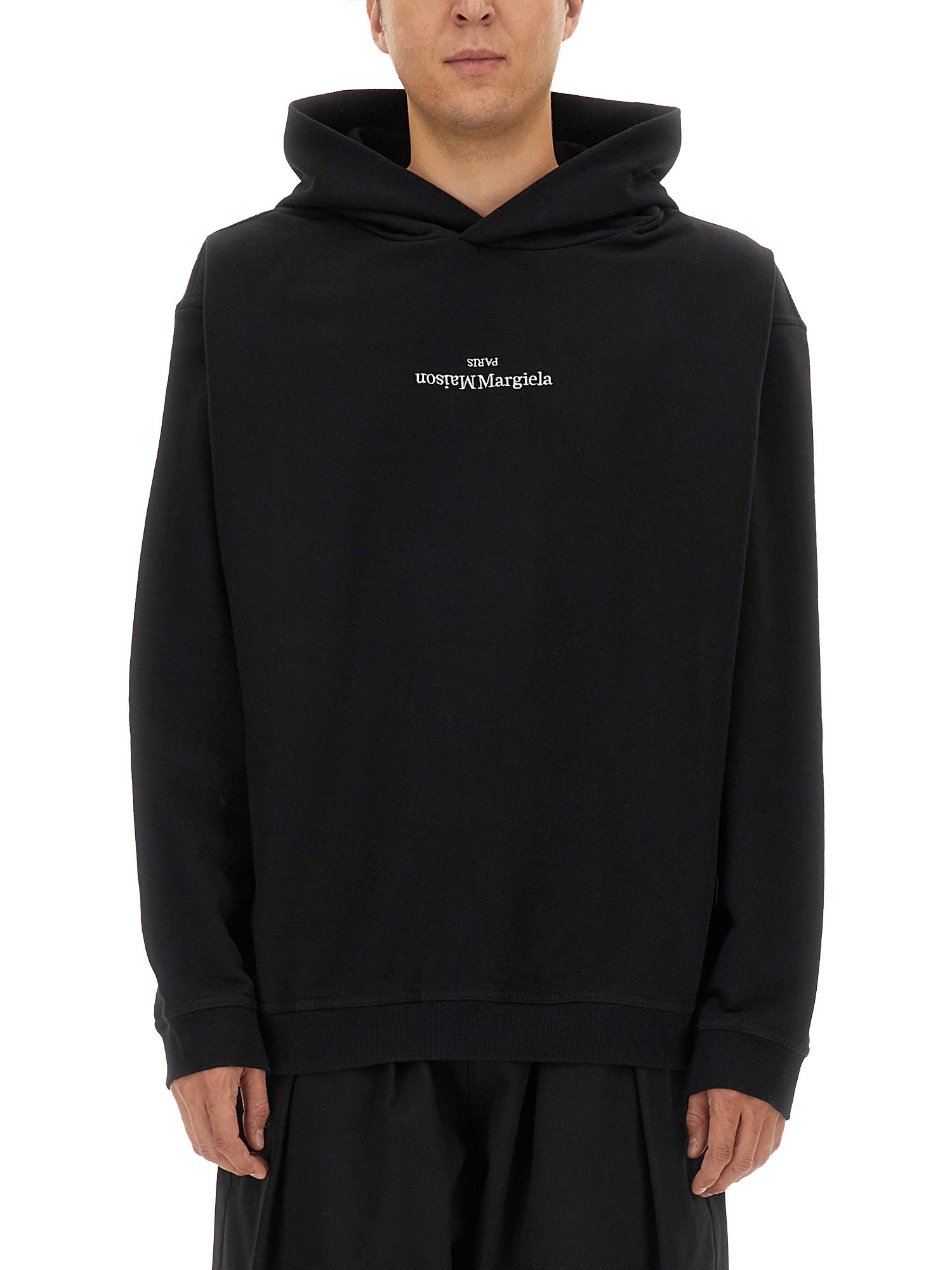 Elevate il vostro guardaroba casual con questa elegante felpa con logo di Maison Margiela. Caratterizzata da scollo con cappuccio, maniche lunghe con fori per i pollici e orlo dritto, questa felpa offre comfort e stile in un unico capo. Perfetta per fare le commissioni o per rilassarsi a casa, questo capo versatile è un must-have per ogni individuo alla moda.