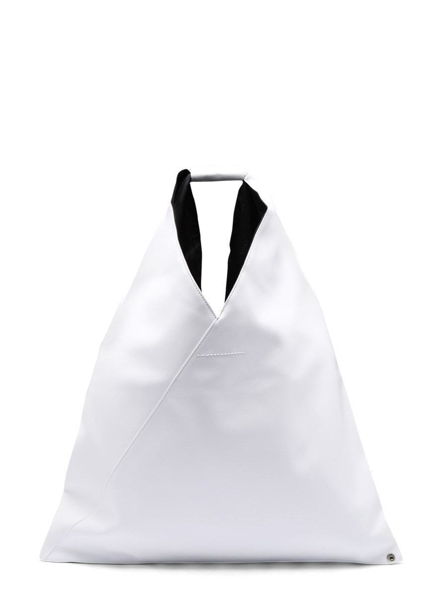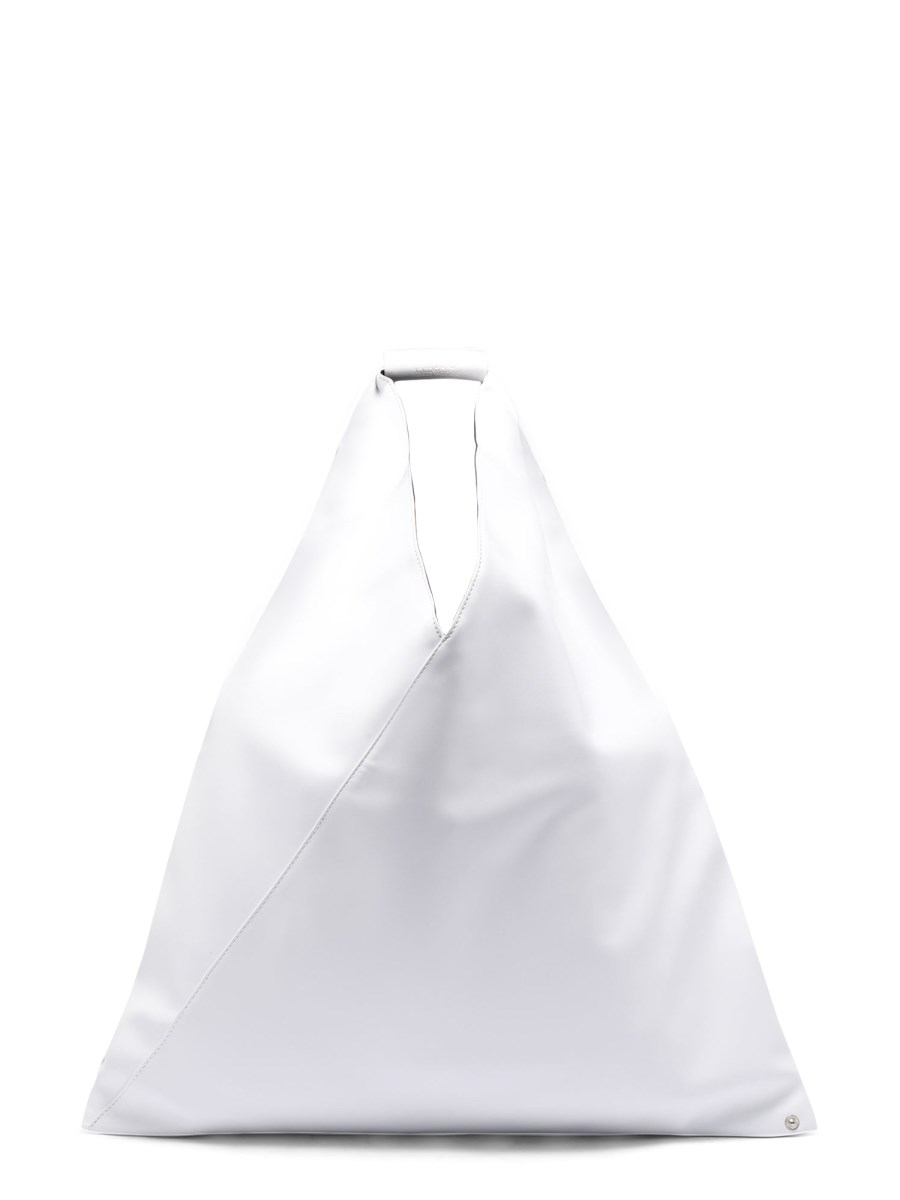 Introdotta per la prima volta nella collezione autunno-inverno 2009, la borsa giapponese è diventata da allora l'accessorio più emblematico di MM6. La sua caratteristica silhouette triangolare si ispira all'arte giapponese di piegare la carta, l'origami. I bottoni ai bordi permettono alla borsa di cambiare forma attraverso la piegatura, evocando i codici del design decostruzionista della Maison. Ogni stagione, la borsa giapponese viene reinterpretata in ulteriori dimensioni e in una varietà di tessuti innovativi, rendendo l'accessorio senza tempo.