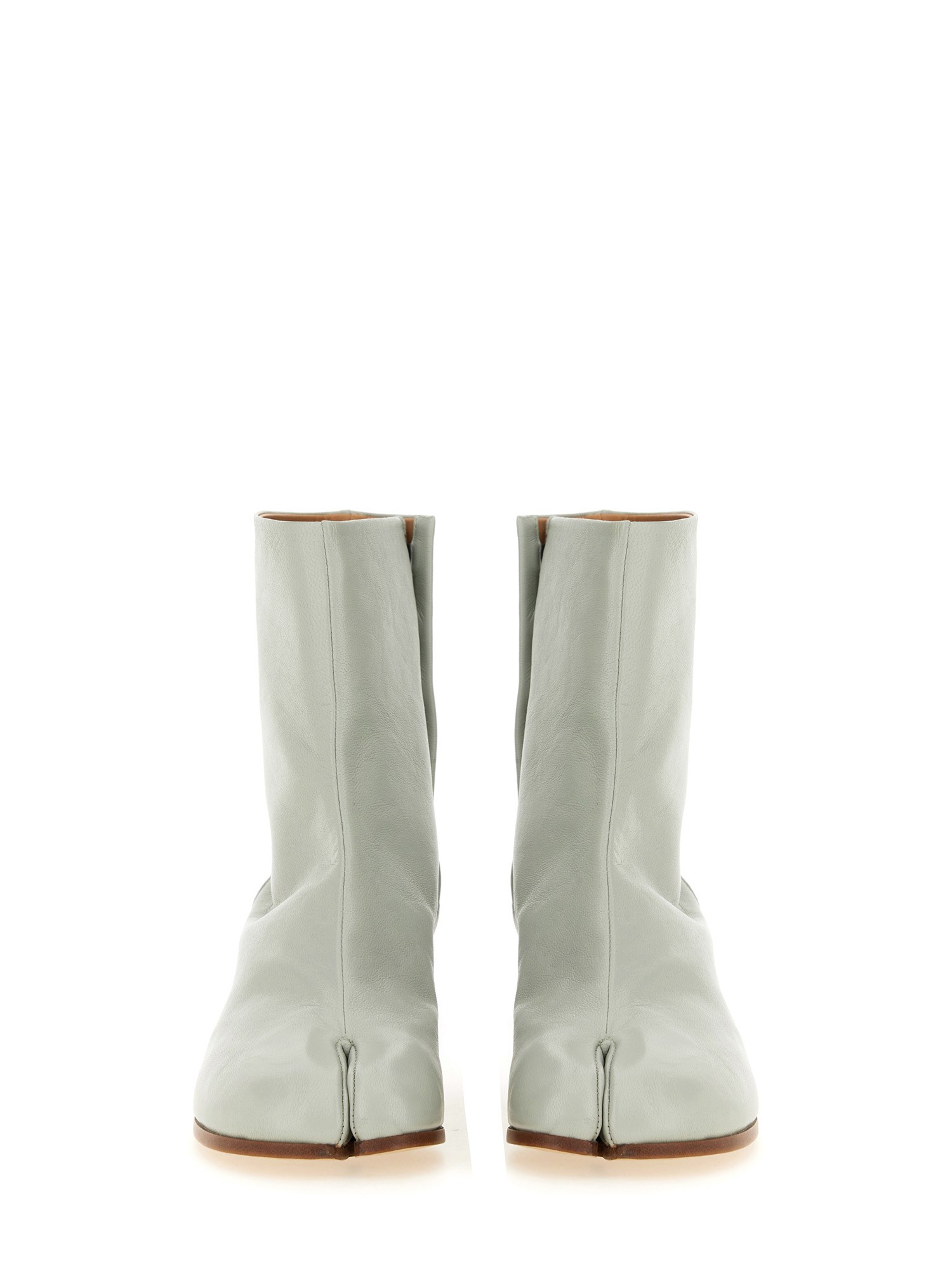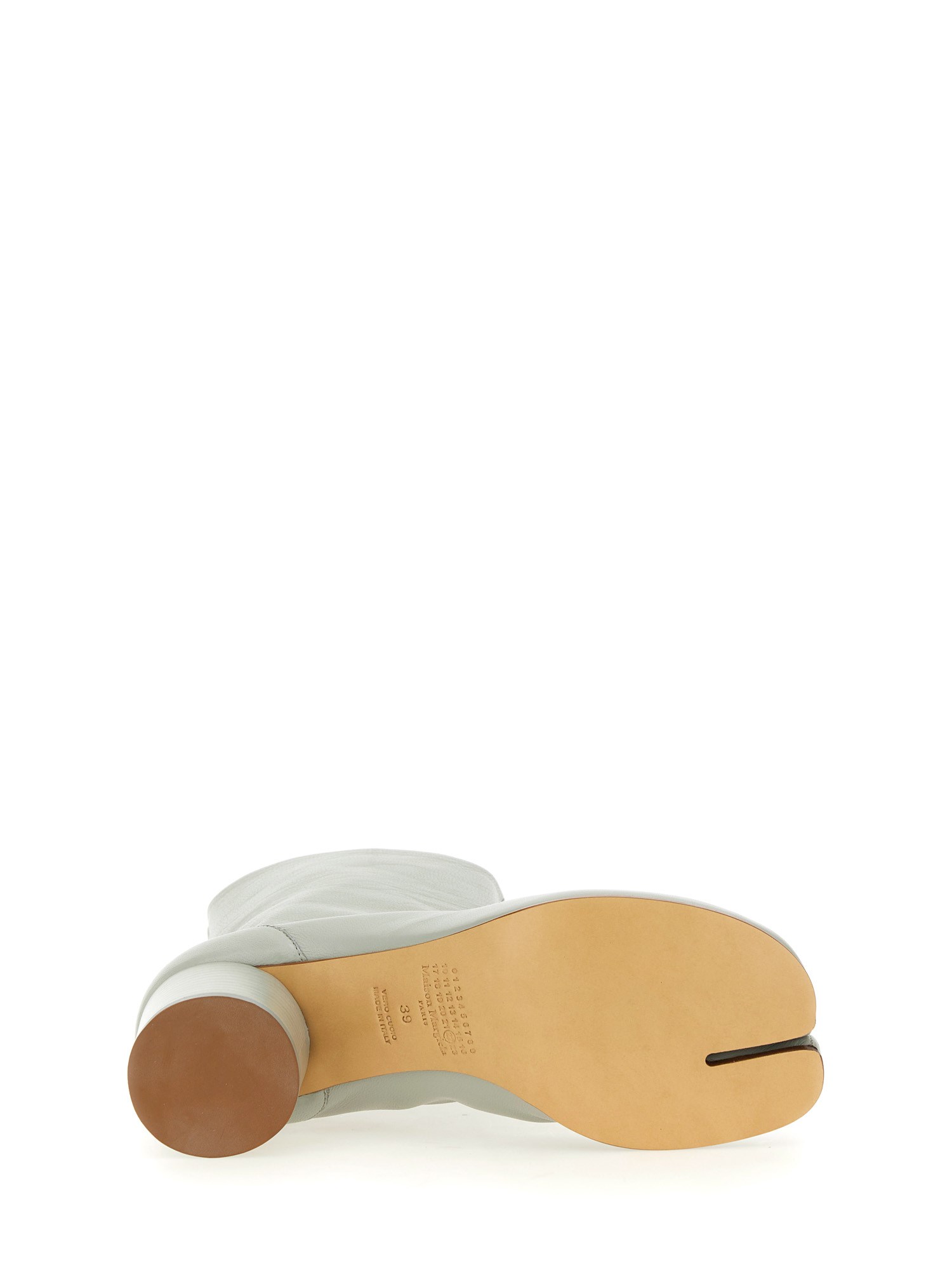 Questi stivaletti in pelle Maison Margiela sono un'aggiunta versatile e sofisticata a qualsiasi guardaroba. Realizzati in pelle di alta qualità, questi stivali presentano un design elegante con punta a punta e un comodo tacco a blocco, che li rende perfetti sia per le occasioni casual che per quelle formali. Il dettaglio del punto Maison Margiela sul tallone aggiunge un tocco di unicità a questi stivali senza tempo.