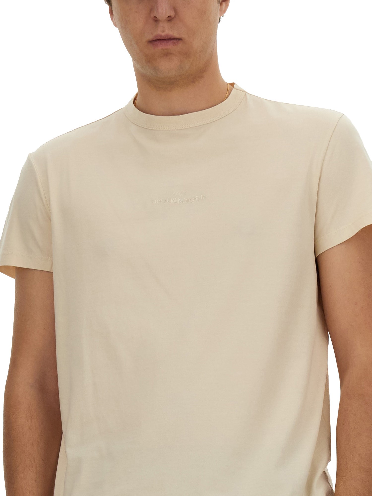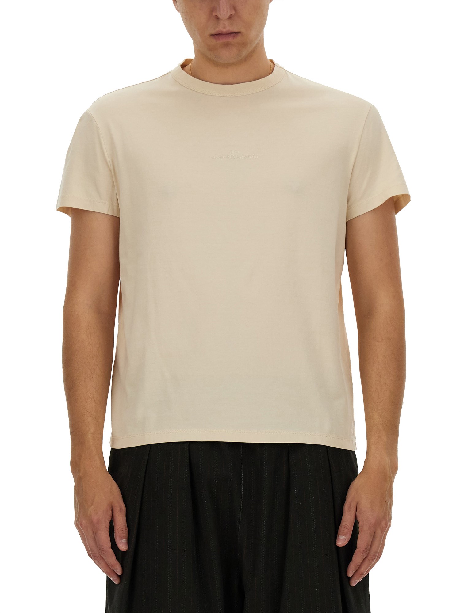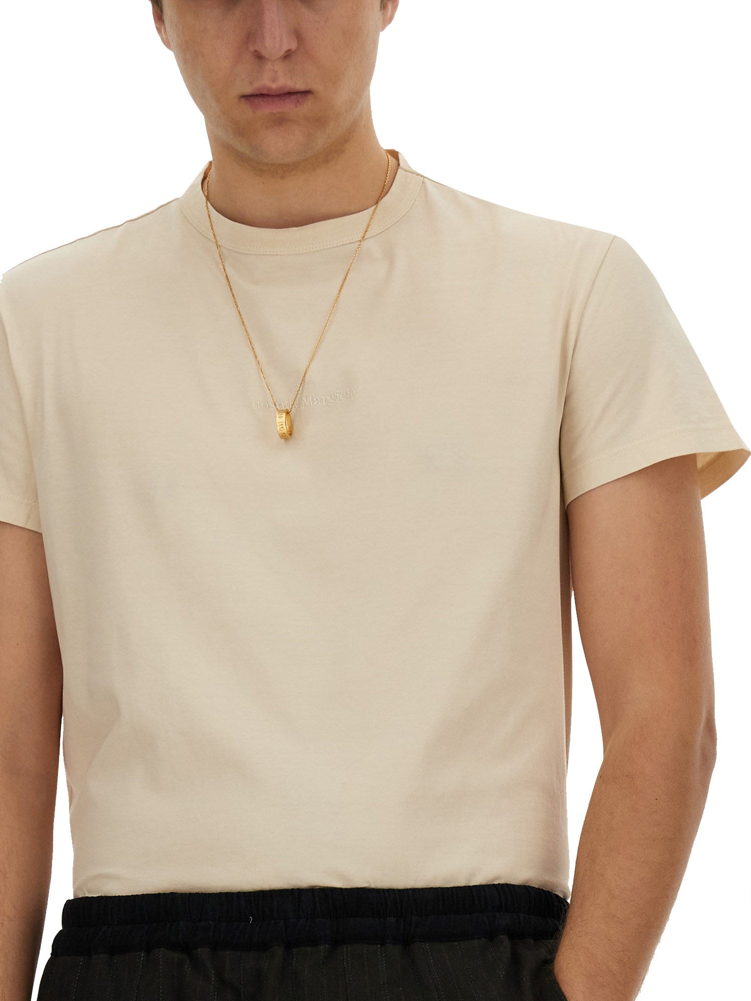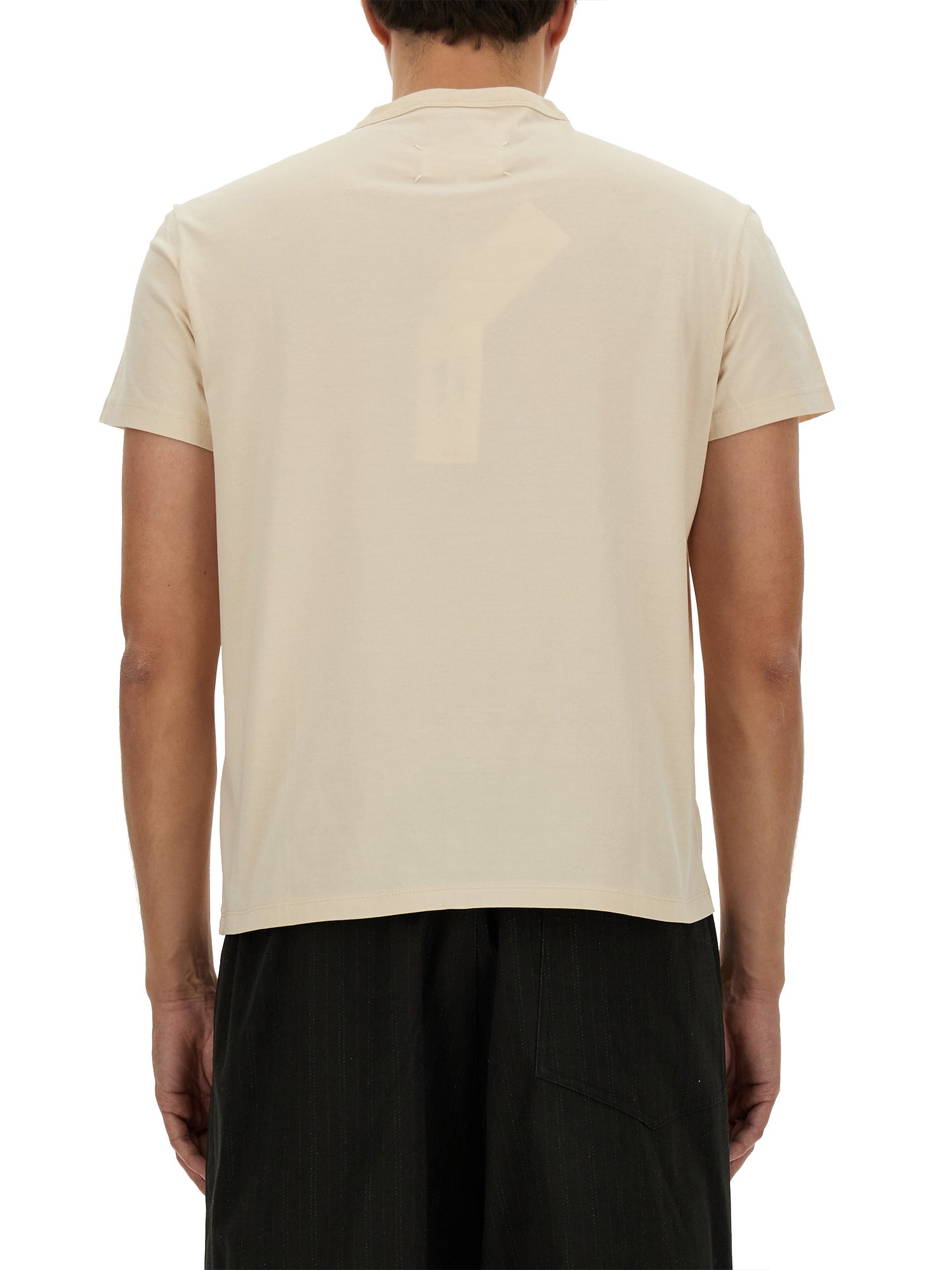 Questa T-shirt in cotone a girocollo di Maison Margiela è un'aggiunta versatile e confortevole a qualsiasi guardaroba. Realizzata in tessuto di cotone morbido e traspirante, offre una vestibilità rilassata ed è perfetta per essere indossata ogni giorno. Il design a girocollo aggiunge un tocco classico, rendendola adatta sia alle occasioni casual che a quelle semi-formali. Disponibile in una vasta gamma di colori, questa T-shirt è un capo indispensabile che può essere facilmente abbinato a jeans, pantaloncini o gonne per un look elegante e disinvolto.