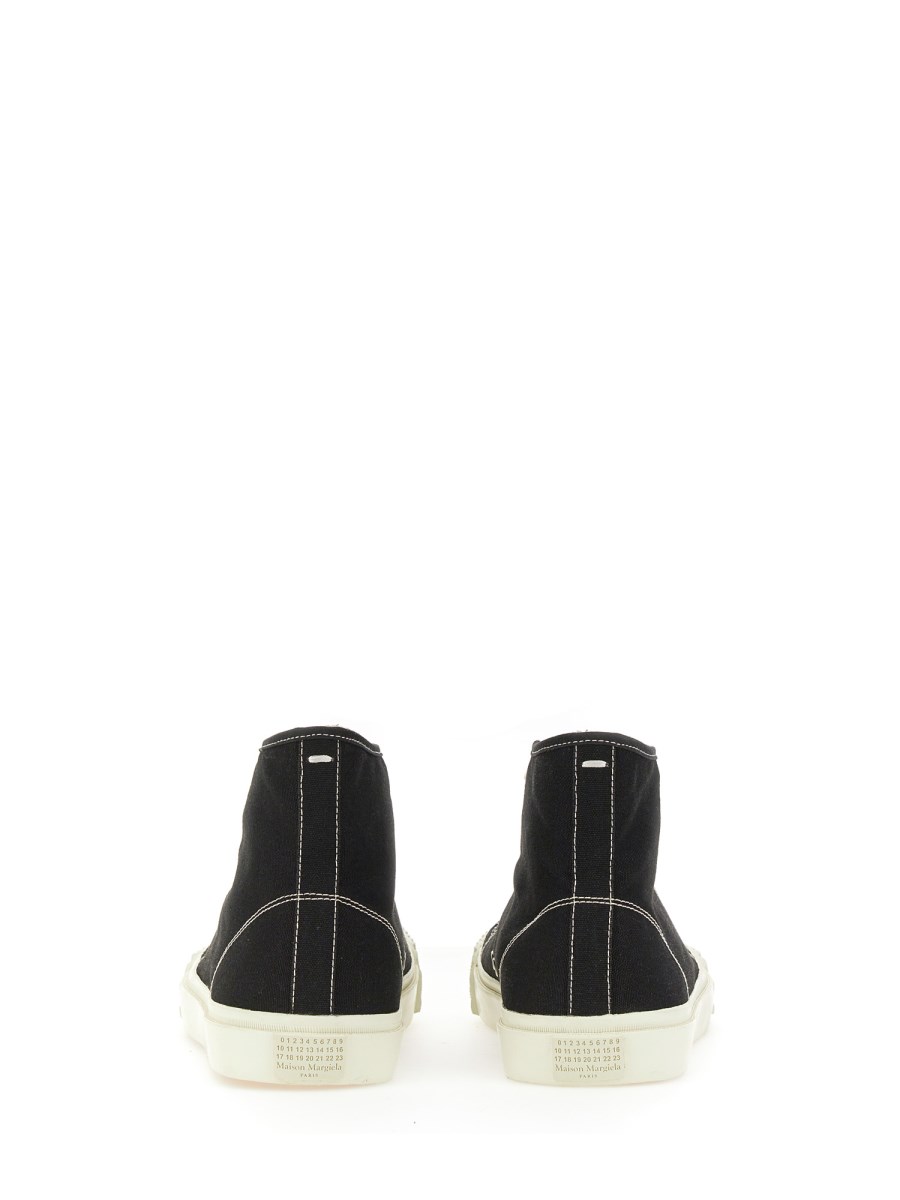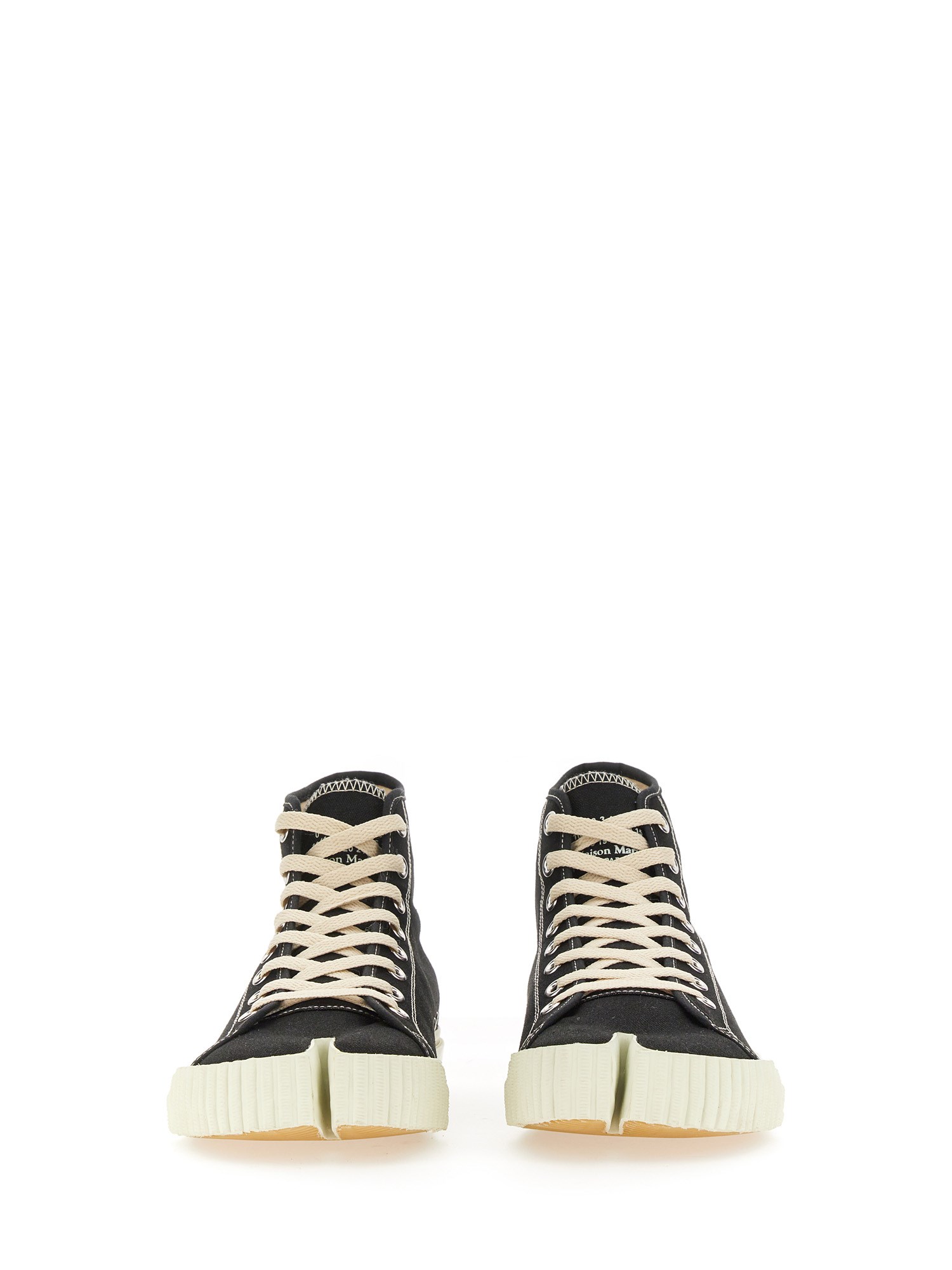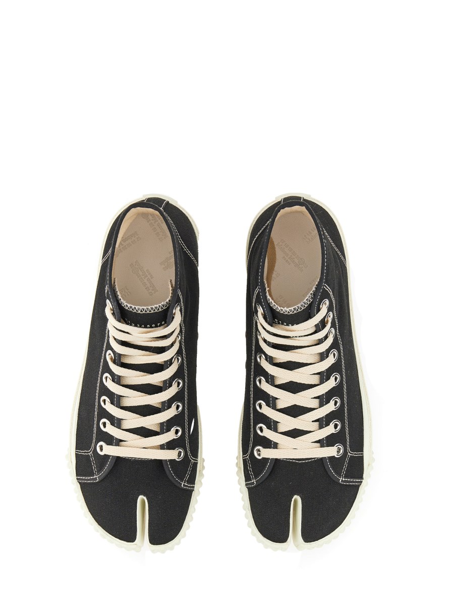 La corsa a piedi nudi è una tendenza attiva, ma con le sneakers di Maison Margiela come queste, non dovrete sacrificare il vostro senso della moda. Queste scarpe sportive sono realizzate in morbido cotone e presentano una chiusura con lacci elastici, l'iconico stile tabi in punta e una suola elegante e resistente. Si tratta di una sneaker casual e quotidiana che può essere indossata con jeans, pantaloncini o qualsiasi altro tipo di fondo.