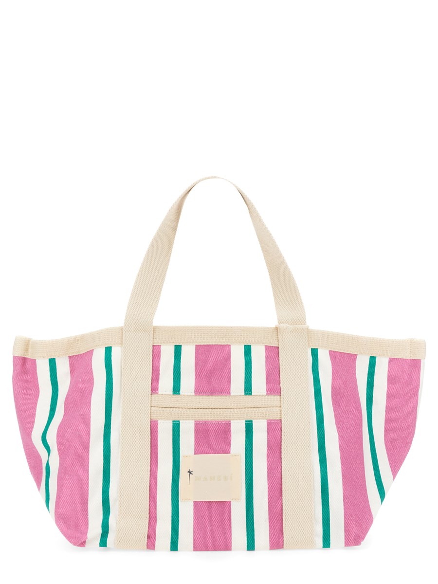 Questa tote bag in tela di Manebi è una borsa classica, semplice ed elegante. La tote bag è realizzata in tela di cotone multicolore ed è robusta e resistente. La borsa è ideale per essere utilizzata come borsa da spiaggia, per trasportare la spesa o anche come borsa per i pannolini. Perfetta per portare tutto il necessario al lavoro, la tote bag in tela di cotone multicolore è robusta e ha un design confortevole.