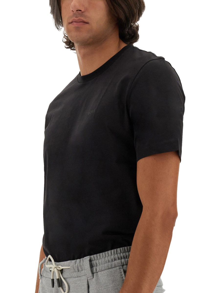 La T-shirt BOSS Cotton unisce comfort e stile, realizzata in cotone di alta qualità per una sensazione morbida e traspirante. Il suo design classico è caratterizzato da una vestibilità sartoriale che la rende adatta sia alle occasioni casual che a quelle semi-formali. L'iconico logo BOSS esalta sottilmente l'estetica della maglietta, assicurando un look sofisticato che si abbina bene a diversi outfit. Ideale per l'uso quotidiano, questo capo versatile è un'aggiunta indispensabile a qualsiasi guardaroba moderno.