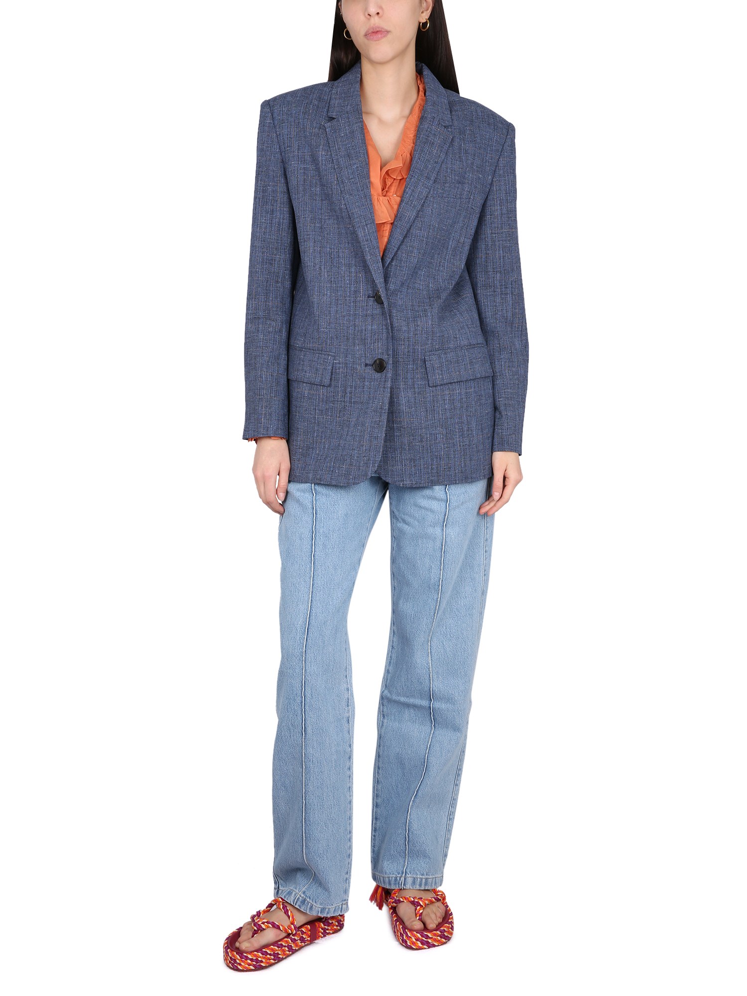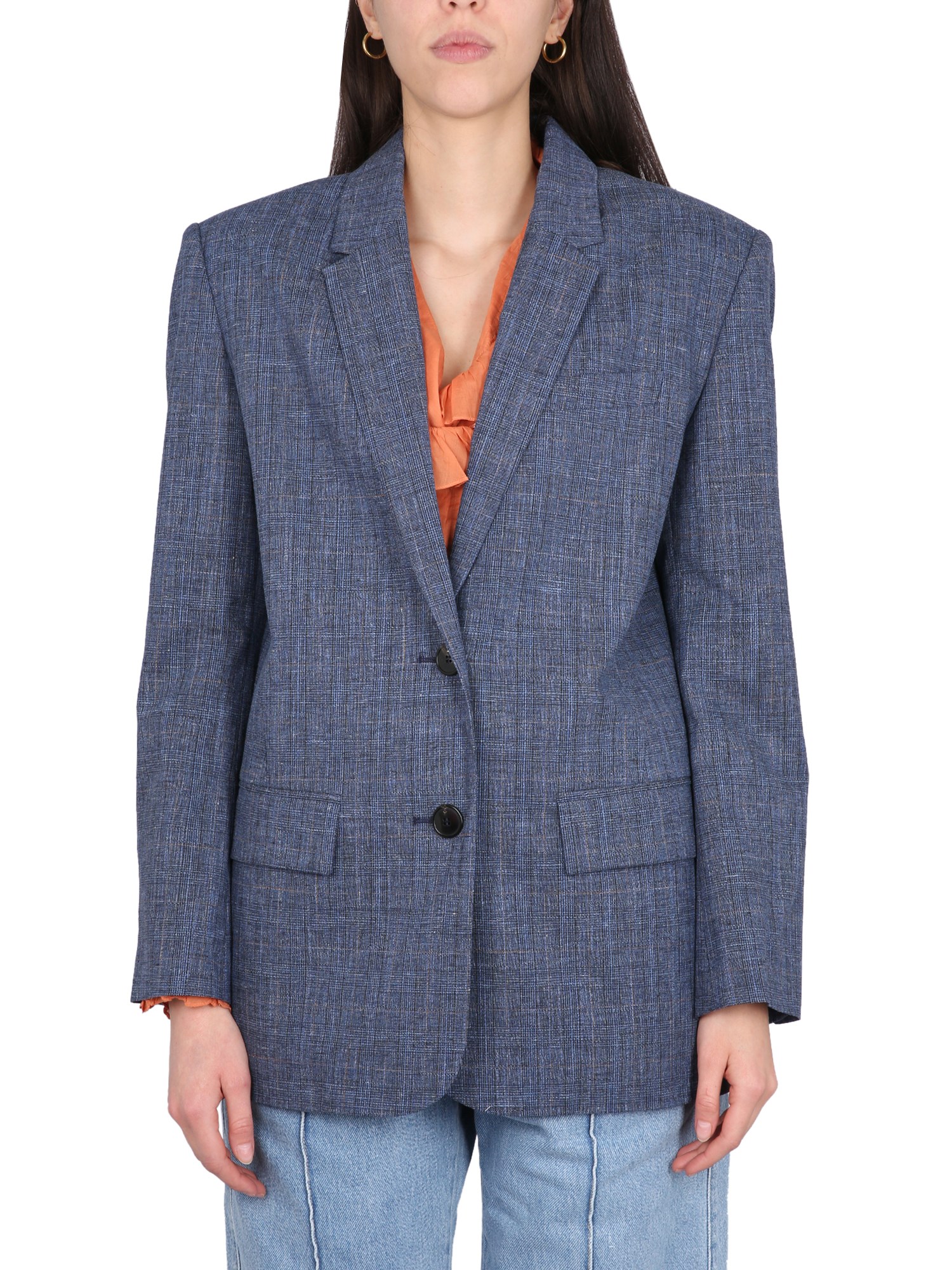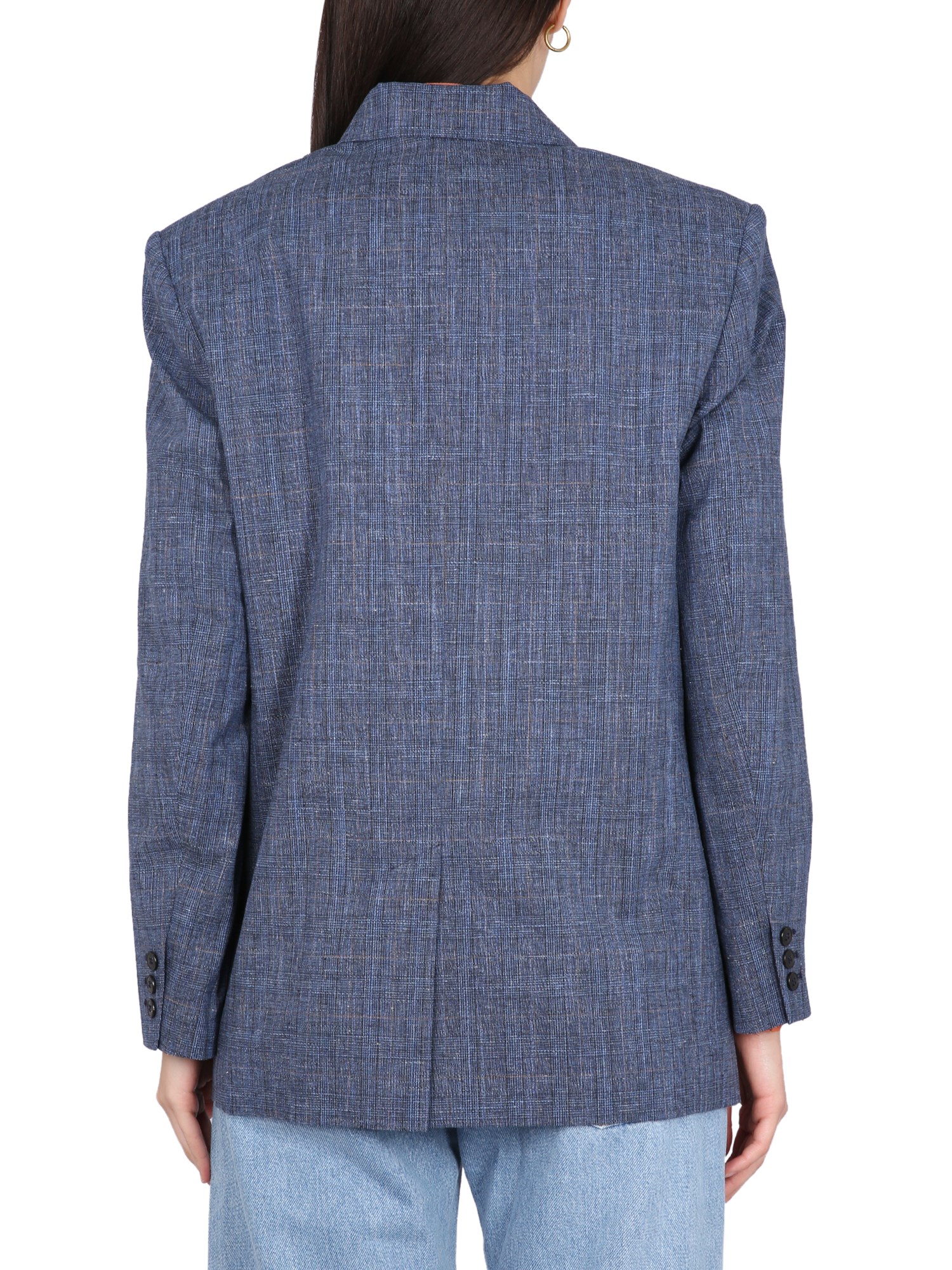 - REVERS A DENTE- CHIUSURA CON BOTTONI- DUE TASCHE LATERALI CON PATTA- UNA TASCA SUL PETTO- 49% LANA VERGINE, 40% COTONE, 10% LINO, 1% ELASTAN- LA MODELLA È ALTA 180 CM E INDOSSA LA TAGLIA 38 FR