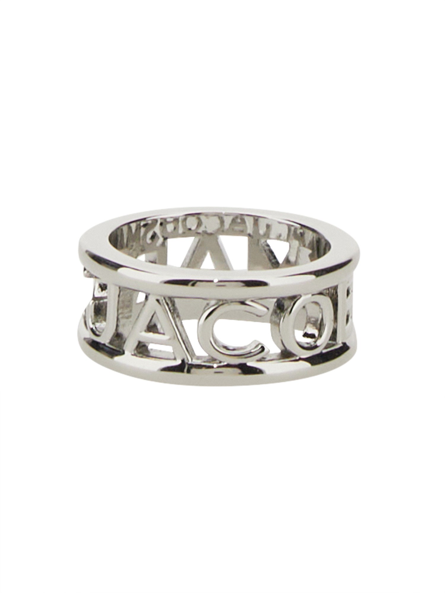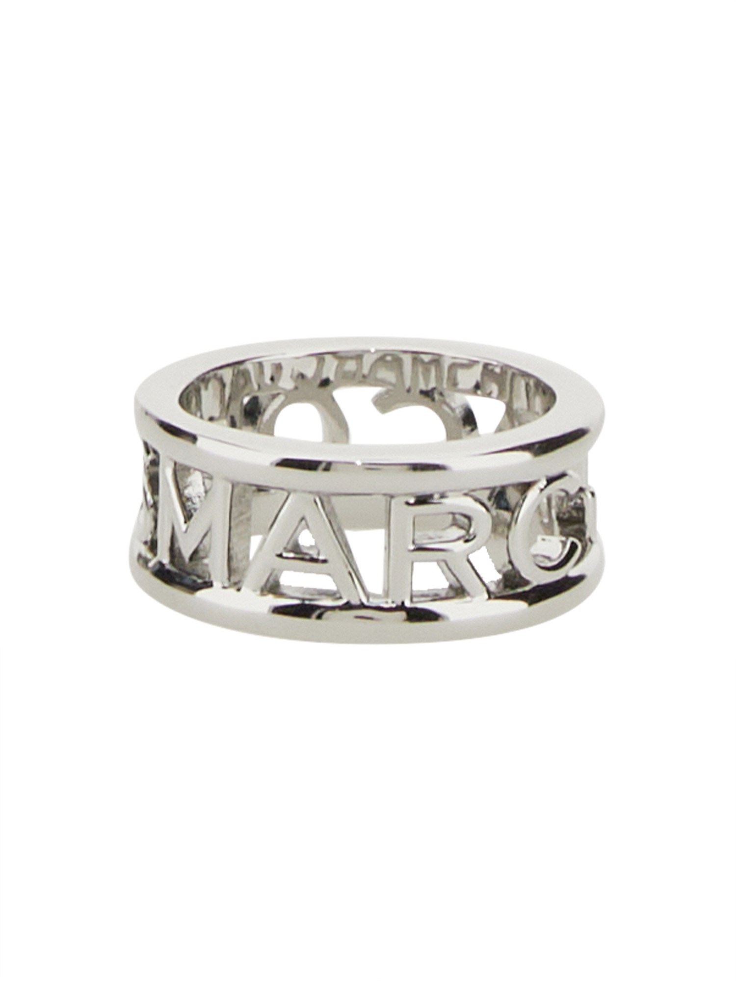 Questo anello Marc Jacobs in argento è realizzato in ottone. L'anello ha un logo sul davanti con la scritta "Marc Jacobs". Questo classico anello Marc Jacobs in ottone con finitura argento è il pezzo perfetto per ogni fashionista. L'anello Marc Jacobs è un gioiello ideale per le donne che cercano uno stile elegante e sobrio.