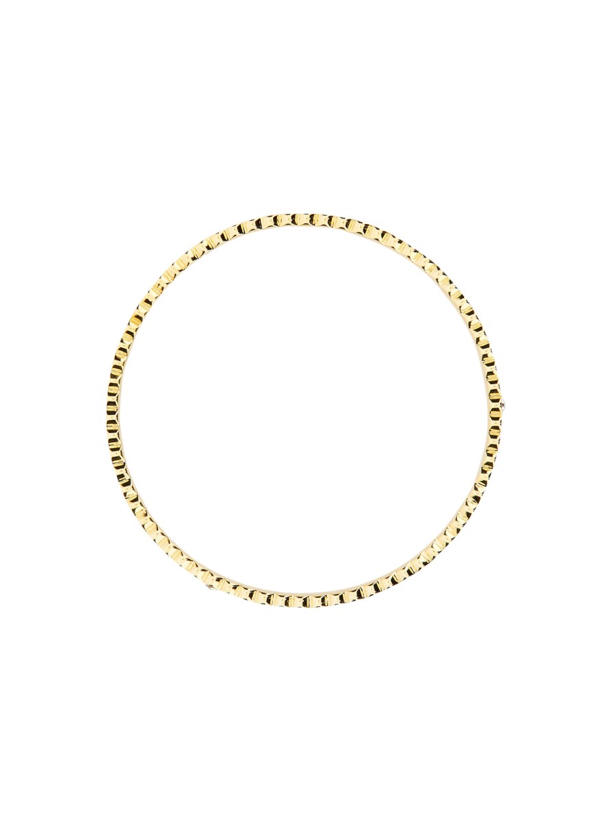 Questo lussuoso e sofisticato bracciale di Marc Jacobs presenta un medaglione in ottone con logo in rilievo al centro. Questo bracciale è perfetto per chi ama un design moderno e un look pulito e minimale. Il bracciale in tonalità oro aggiunge stile ed eleganza al vostro look.