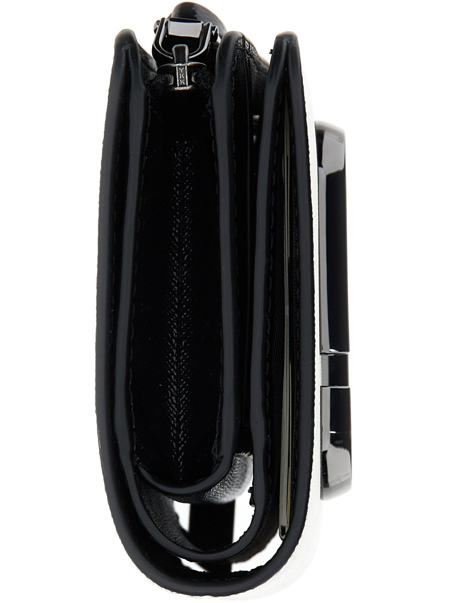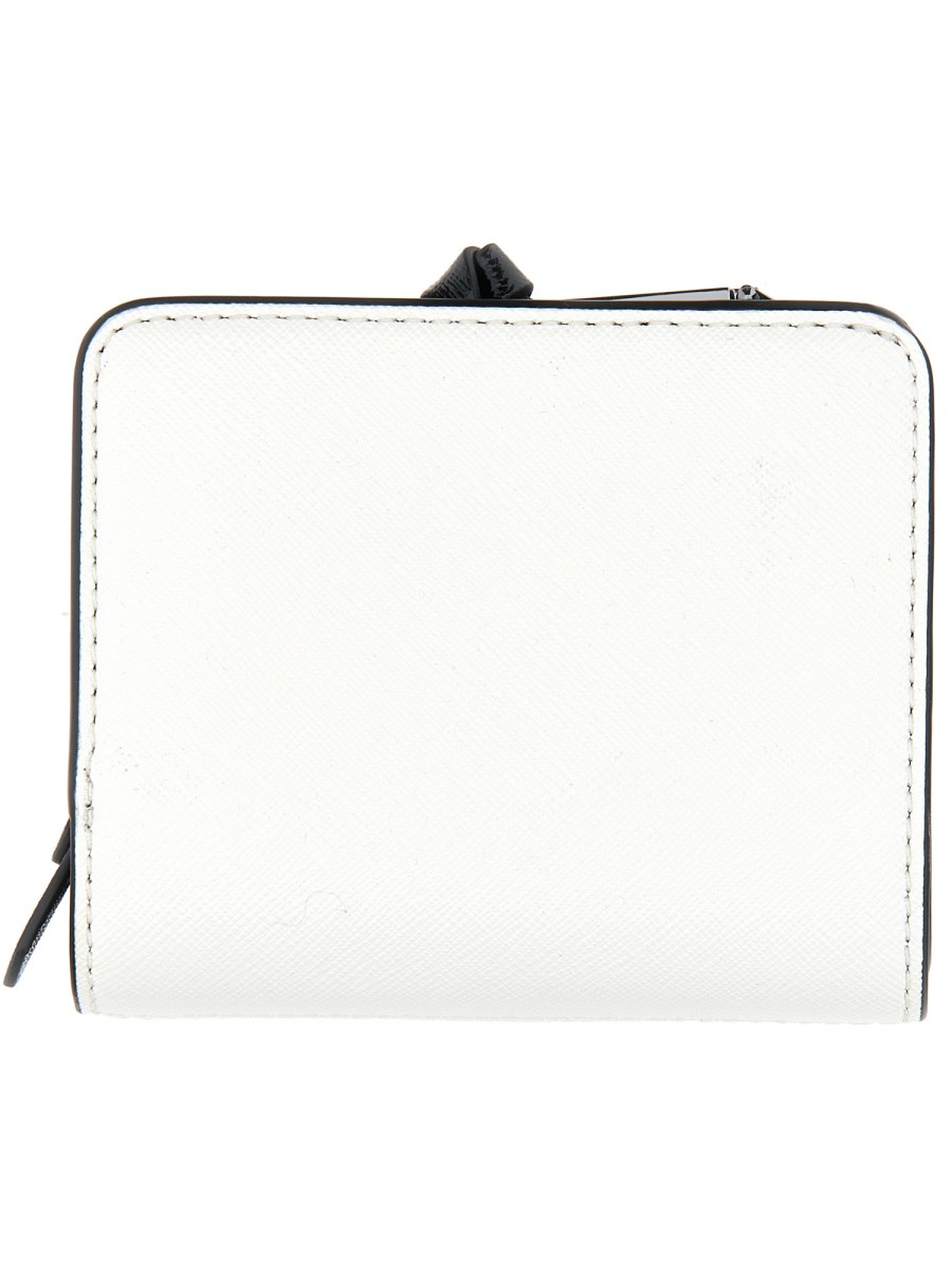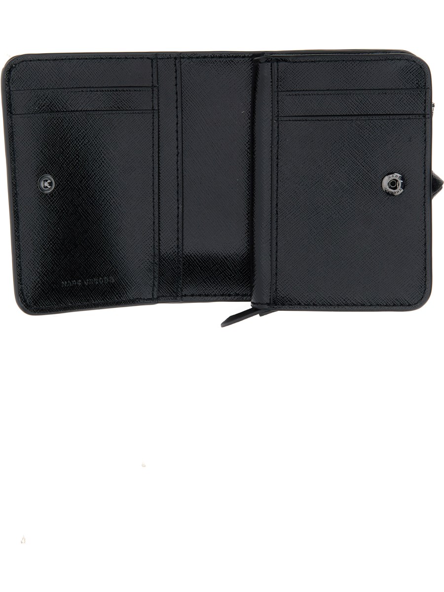 Il portafoglio di Marc Jacobs è piccolo e compatto, perfetto da portare sempre con sé. L'elegante portafoglio presenta quattro scomparti per carte, una tasca per banconote e una tasca per monete con cerniera. L'elegante portafoglio ha una chiusura con bottone a pressione ed è impreziosito da accessori in metallo con finitura dorata.