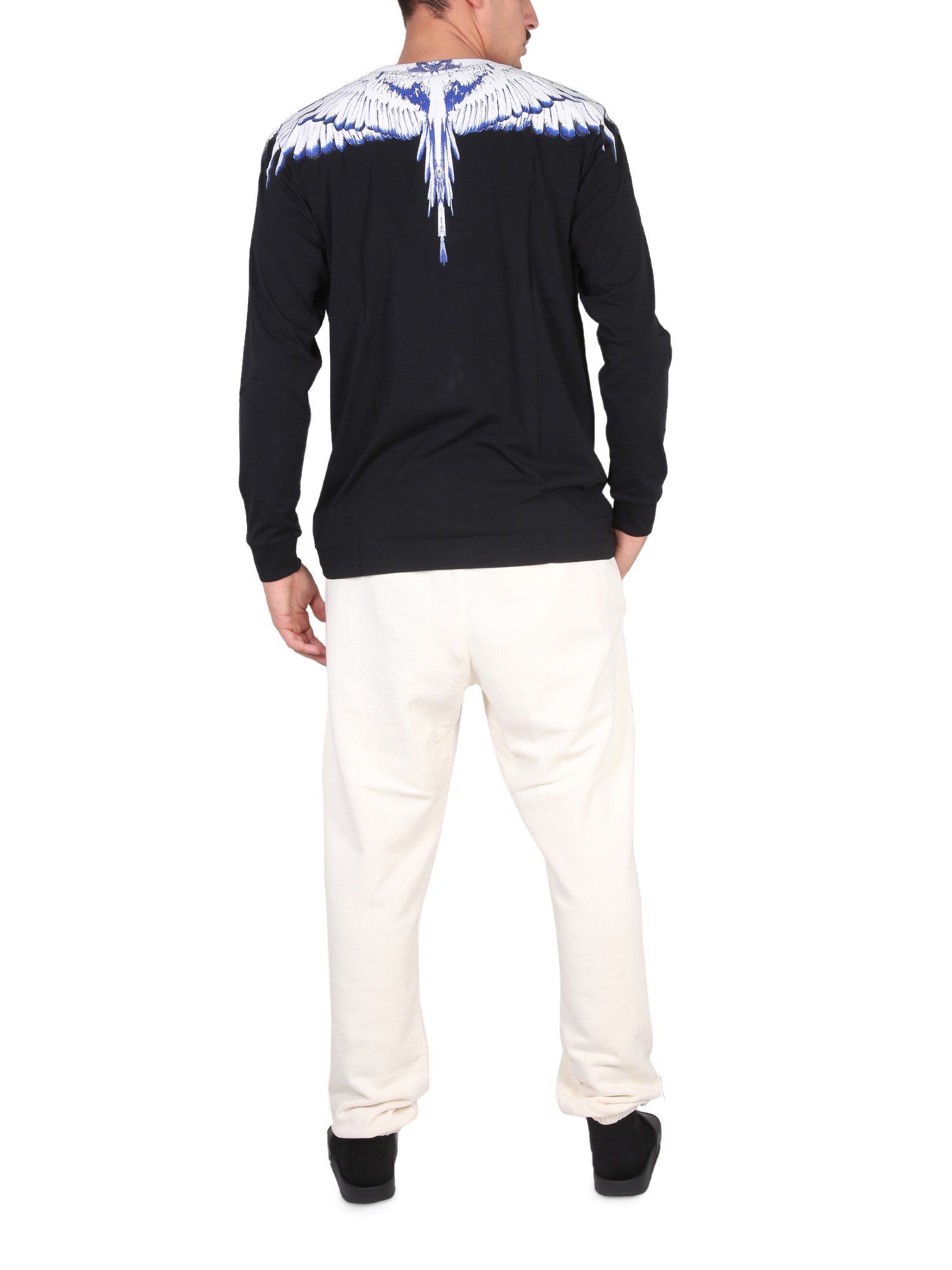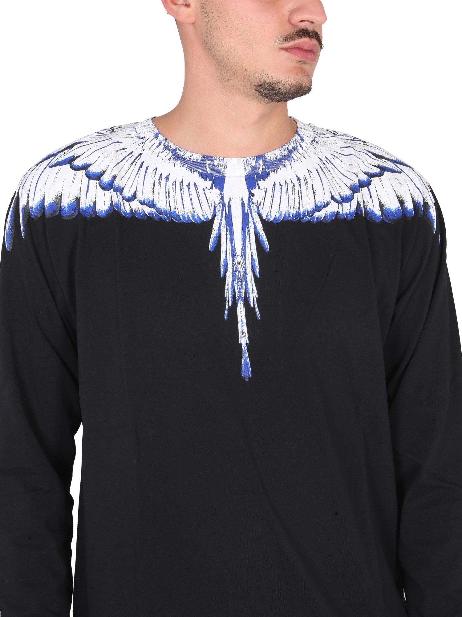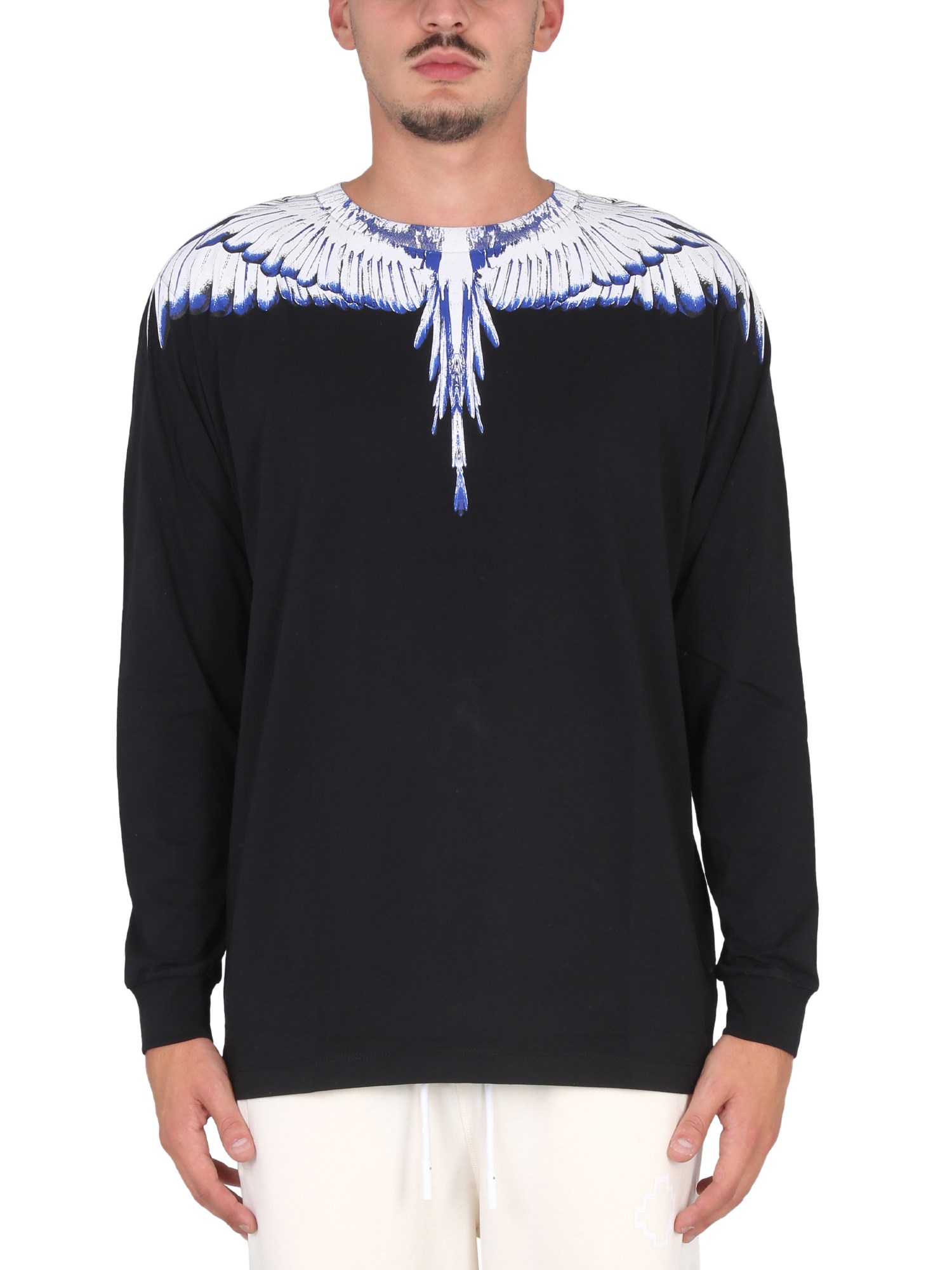 Una T-shirt a maniche lunghe della maison Marcelo Burlon County Of Milan è un capo essenziale di ogni guardaroba. È un capo d'abbigliamento che può essere abbinato a seconda dell'occasione. La maglietta è realizzata in 100% cotone, che la rende morbida e traspirante. La t-shirt dalla vestibilità regolare è ornata da un'iconica stampa ad ali sulle spalle.