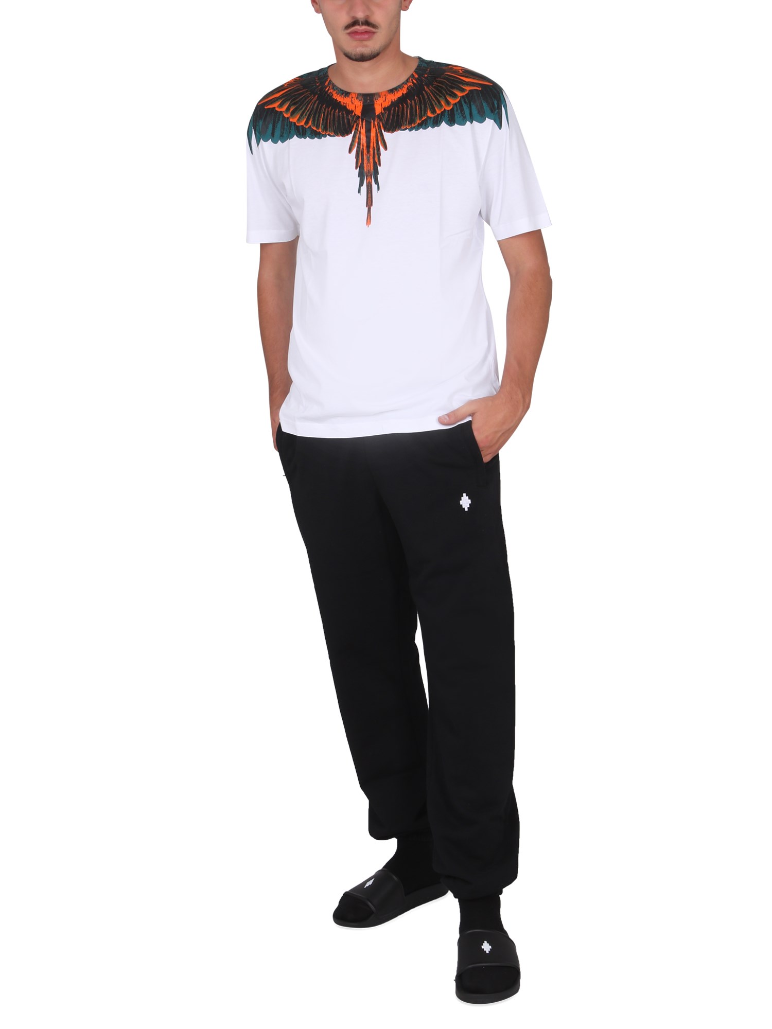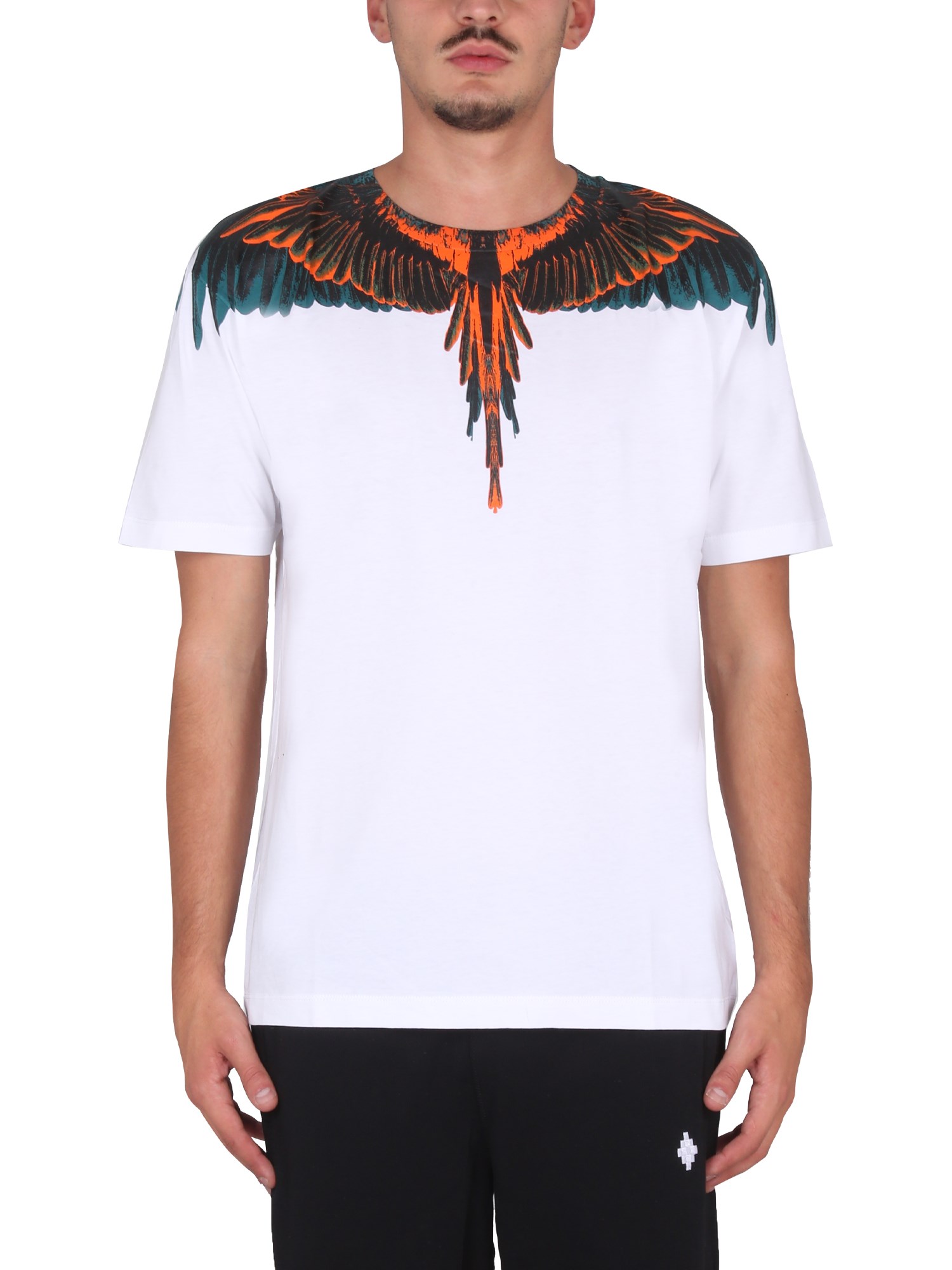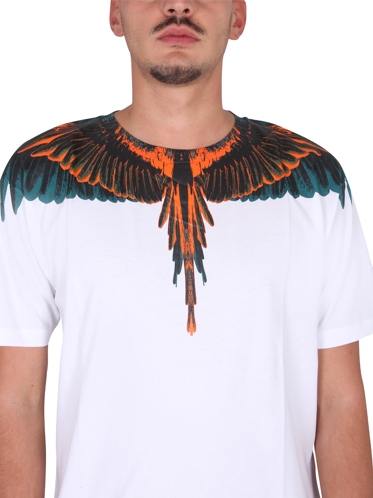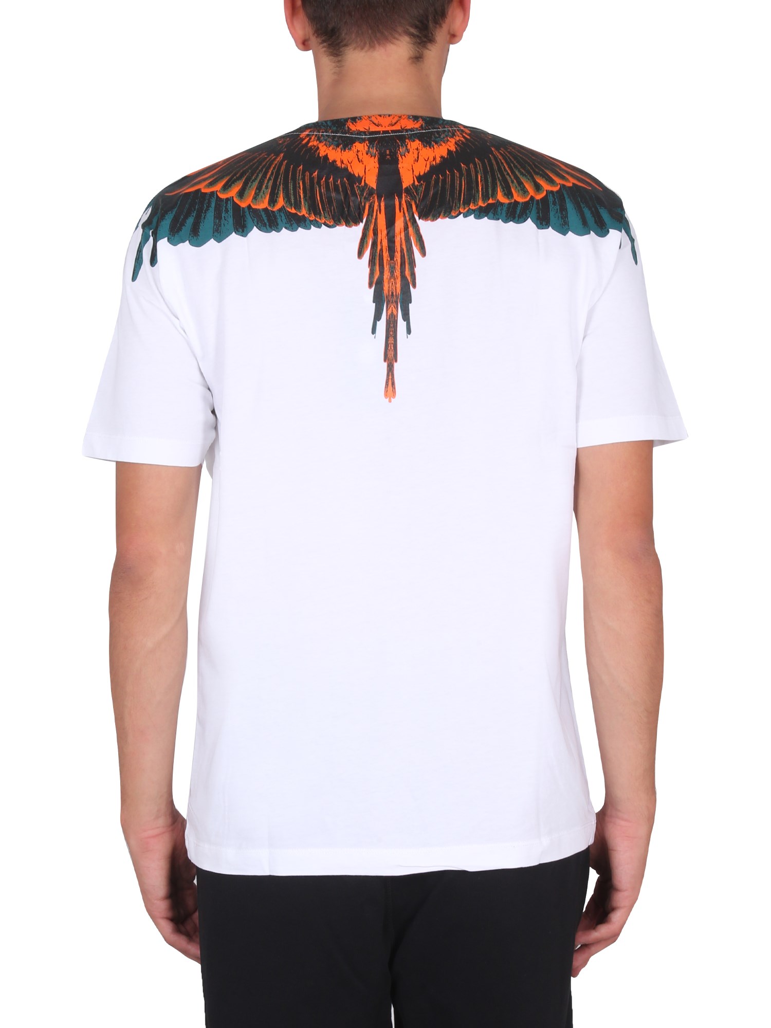 Indossate un look classico e versatile per il vostro weekend optando per una T-shirt in jersey di cotone della casa Marcelo Burlon County Of Milan. Ha una scollatura a girocollo, maniche corte e orlo dritto. La t-shirt, dalla vestibilità regolare, ha un taglio a strappo e un'accattivante stampa di ali sulla spalla.