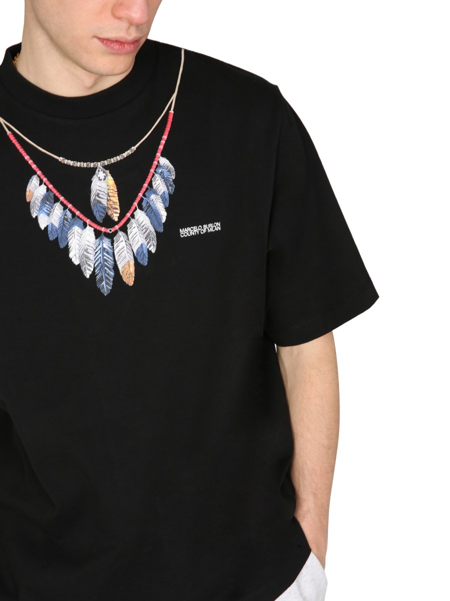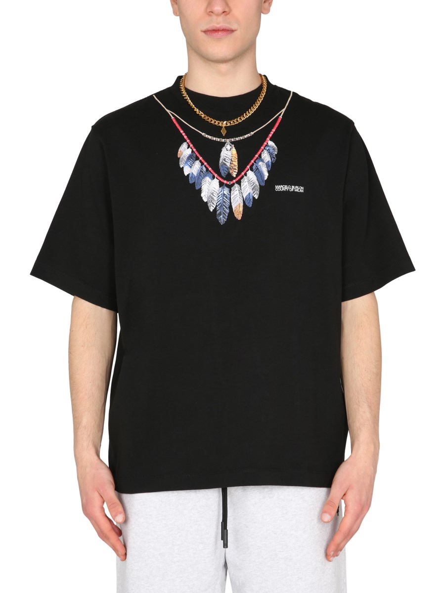 - GIROCOLLO - STAMPA DOUBLE CHAIN CON LOGO FRONTALE - REGULAR FIT - 100% COTONE - IL MODELLO É ALTO 190 CM E INDOSSA LA TAGLIA M