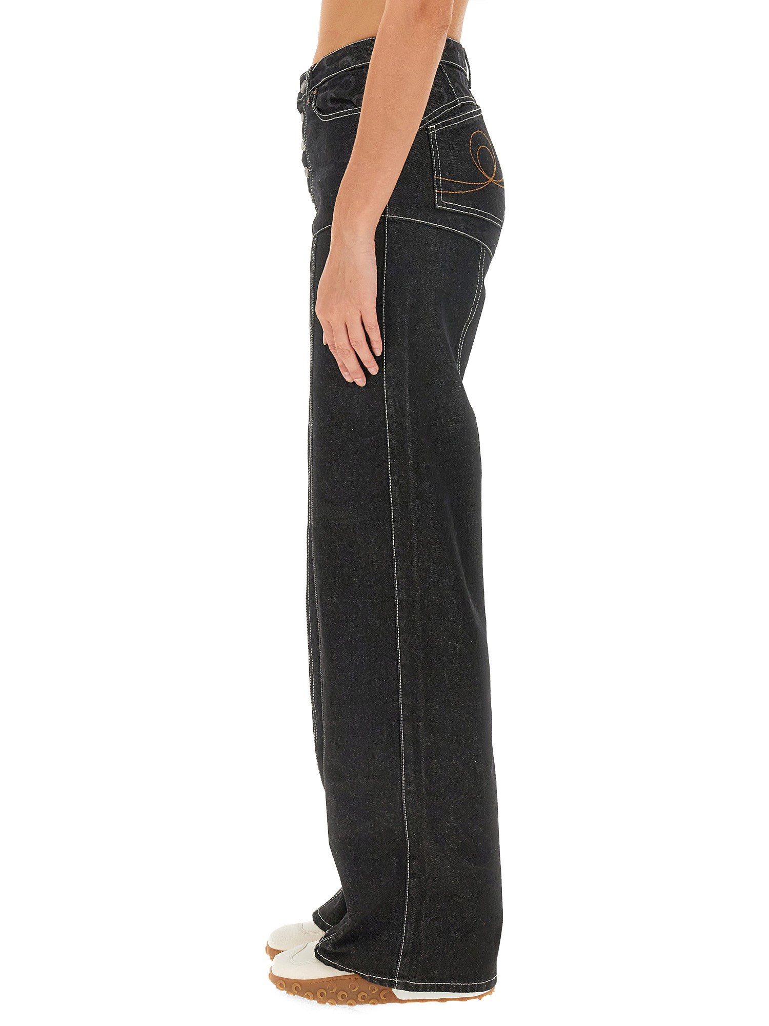 I jeans Flare Fit di Marine Serre combinano un design contemporaneo con una silhouette classica, caratterizzata da un'elegante vita alta e da una caratteristica gamba svasata che esalta i movimenti e lo stile. Realizzati in denim di prima qualità, questi jeans offrono comfort e durata, rendendoli un'aggiunta versatile a qualsiasi guardaroba. I dettagli unici e il marchio riflettono l'impegno di Marine Serre per una moda innovativa, garantendo che questi jeans si distinguano in qualsiasi ambiente. Ideali sia per le occasioni casual che per quelle eleganti, possono essere abbinati senza sforzo a una varietà di top e calzature.