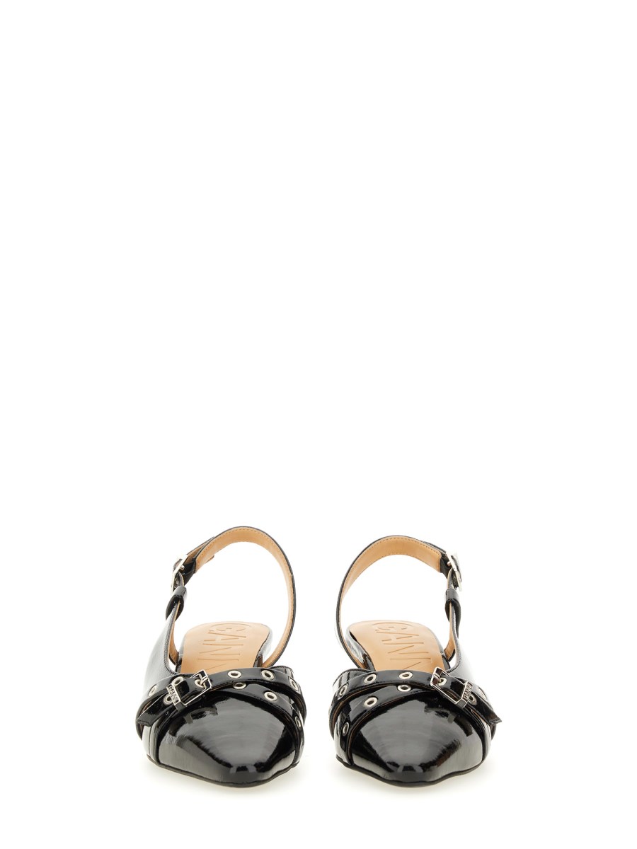 La scarpa con fibbia di Ganni combina un design contemporaneo con un'eleganza classica, con una silhouette elegante e un dettaglio distintivo di fibbia che ne esalta l'estetica. Realizzata con materiali di alta qualità, questa scarpa offre comfort e durata, rendendola adatta a diverse occasioni. Il suo stile versatile permette di abbinarla facilmente ad outfit sia casual che formali, assicurando che diventi un punto fermo in ogni guardaroba.
