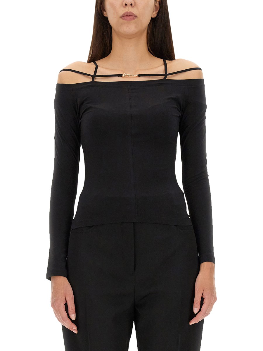 - SPALLINE INCROCIATE- SCOLLO A BARCA- SLIM FIT- 94% COTONE, 6% ELASTANE- LA MODELLA É ALTA 180 CM E INDOSSA LA TAGLIA S