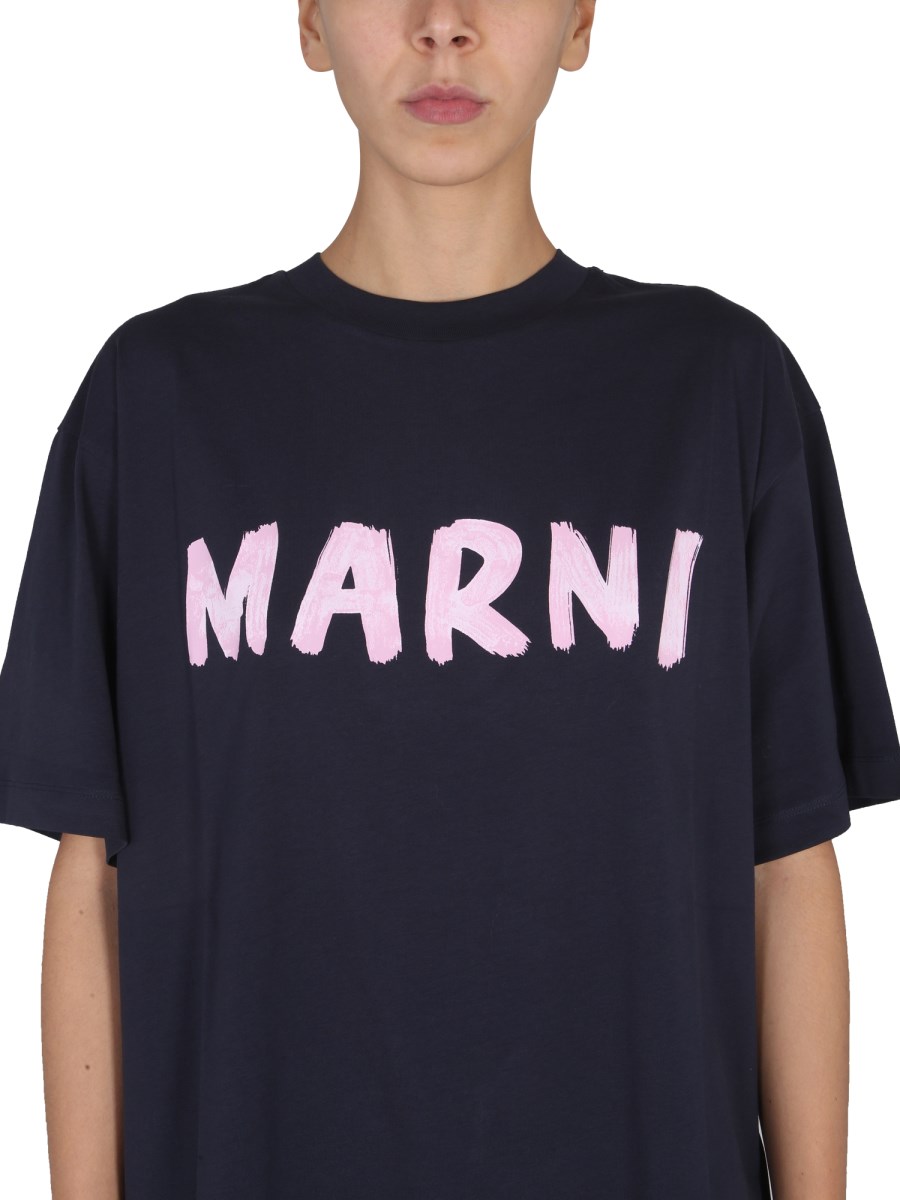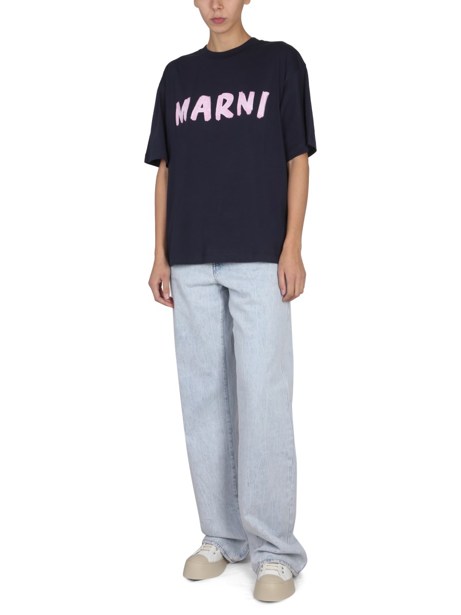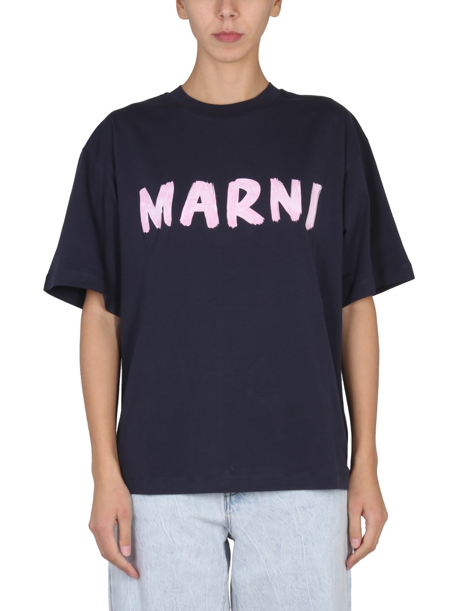 La T-shirt in cotone con stampa frontale del logo di Marni è una maglietta basic dalla vestibilità regolare. Il girocollo offre una vestibilità più confortevole e può essere indossato sotto giacche o maglioni. Il girocollo è ottimo per la vestibilità a strati e ha una sensazione più morbida rispetto a una T-shirt standard. La vestibilità regolare di questa T-shirt consente una maggiore traspirazione ed elasticità, rendendola più confortevole.