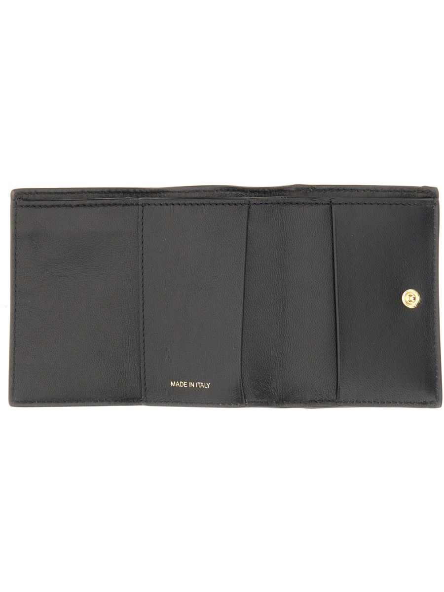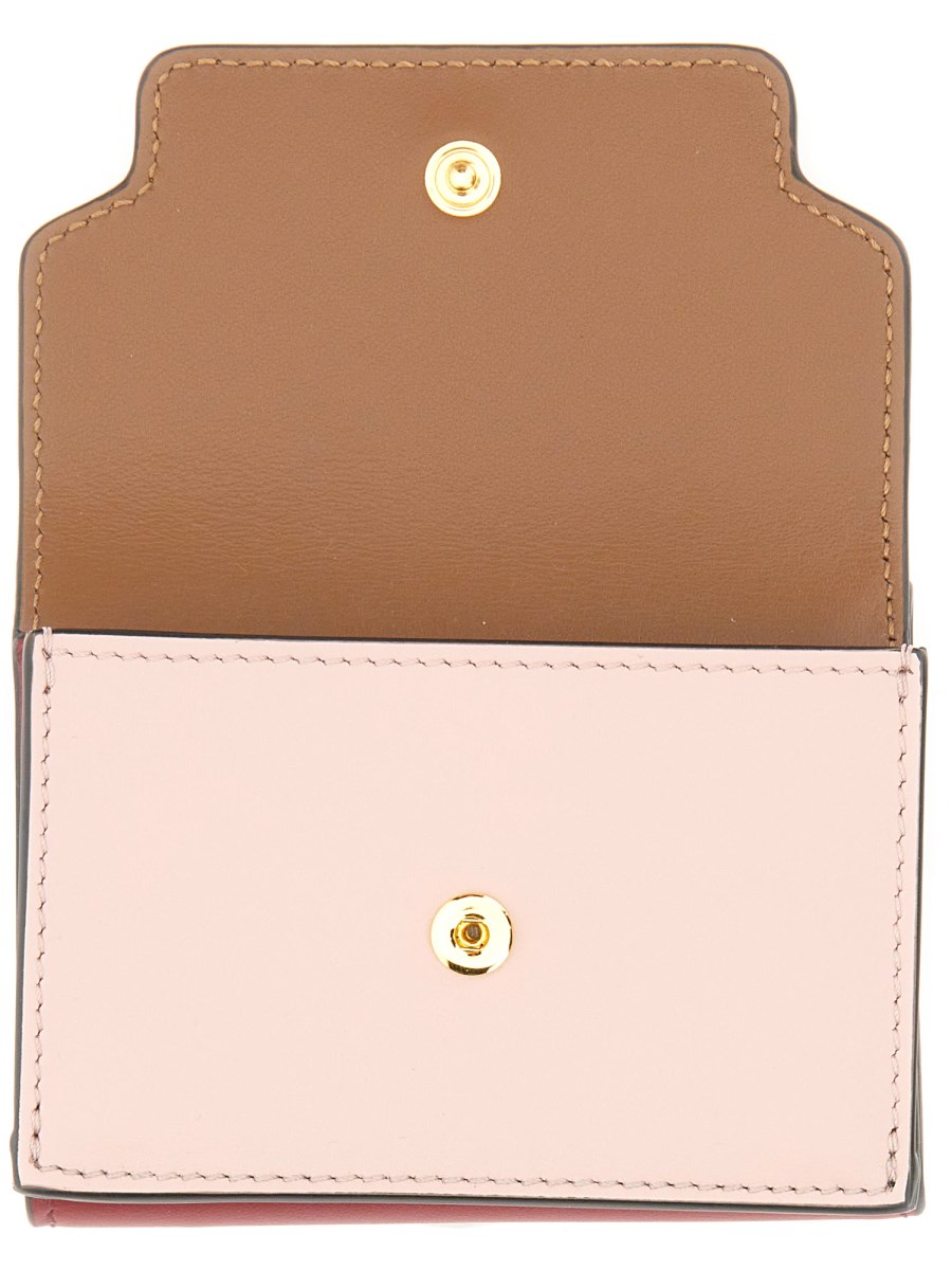 Il portafoglio tr-fold di Marni è realizzato in pelle Saffiano, raffinata e lussuosa. Ha una finitura liscia e una texture ricca e profonda. Il portafoglio presenta un bordo rifinito a mano che gli conferisce un aspetto elevato. Il portafoglio ha un design a tre ante, con una chiusura magnetica all'esterno. È dotato di più scomparti per riporre le carte di credito.