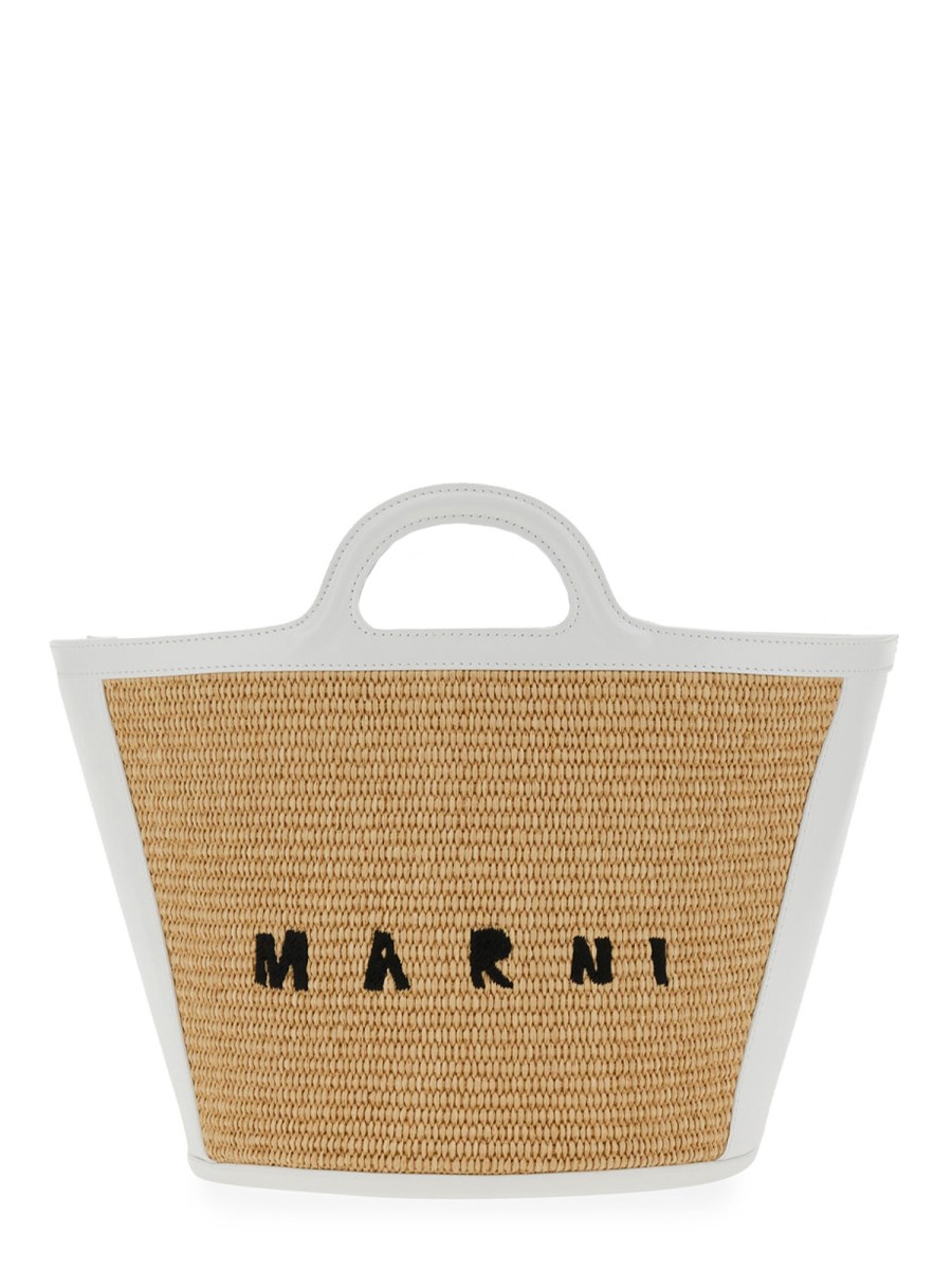 Questa piccola borsa a tracolla di Marni è realizzata con un misto di rafia e pannelli in pelle e ha una chiusura a strap. È realizzata in misto cotone e ha dimensioni ridotte. Questa piccola borsa ha un design sobrio, perfetto per l'uso quotidiano. La borsa è realizzata in un morbido misto cotone che la rende comoda e facile da trasportare.